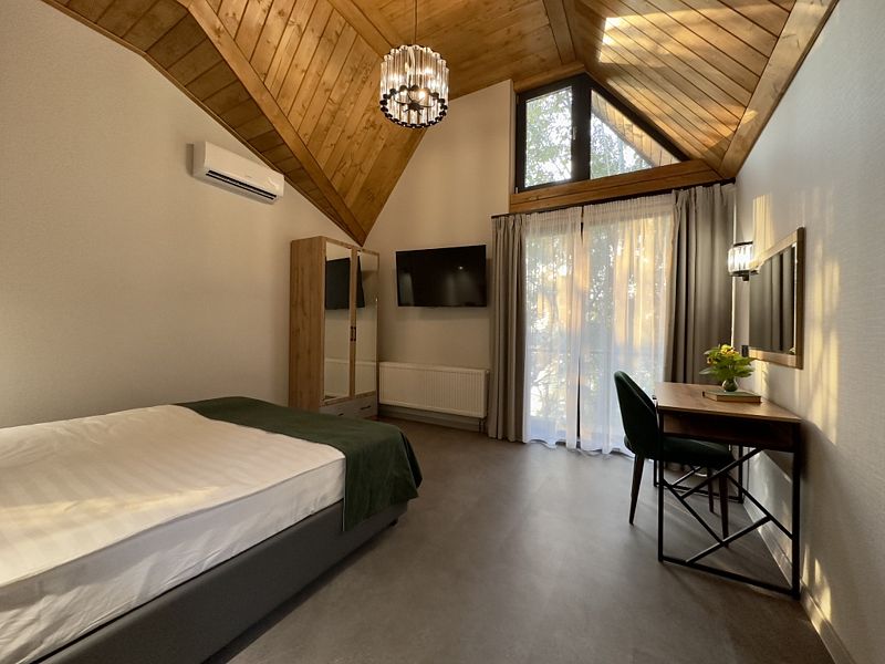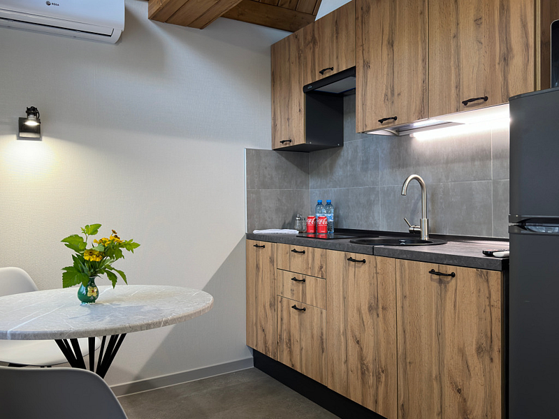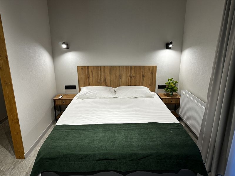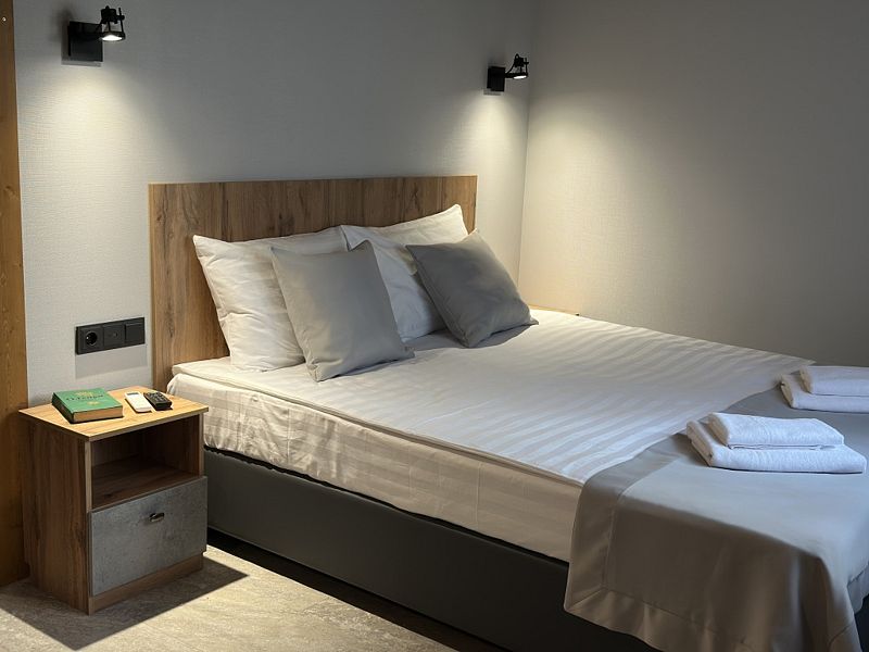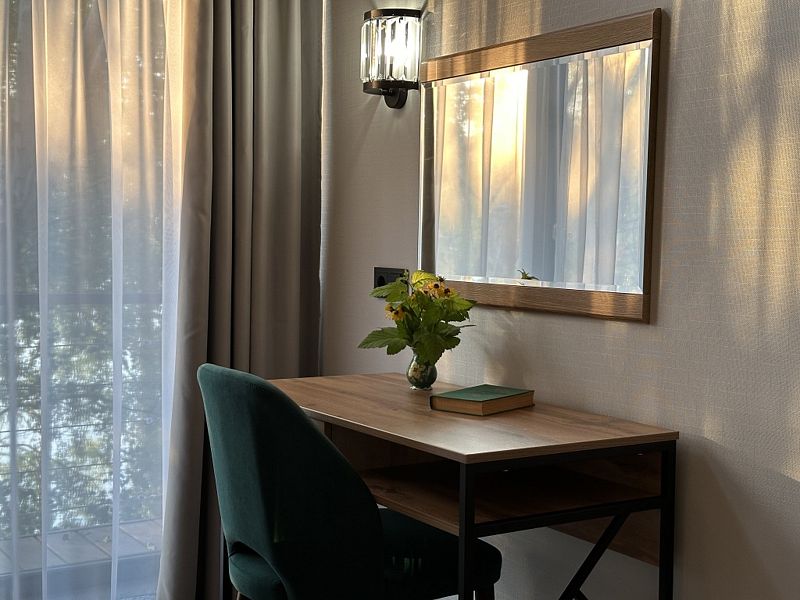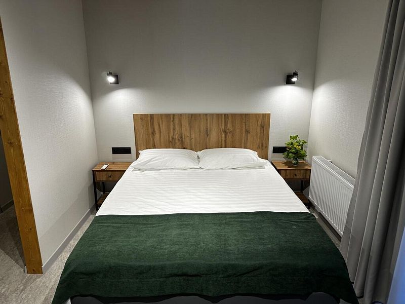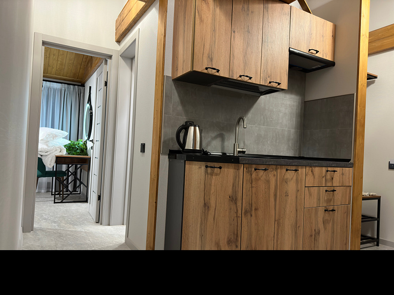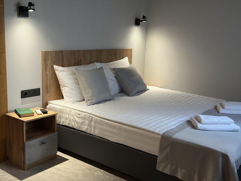 Двухместные апартаменты-студия с кухней, обеденной зоной, с видом на озеро. Есть вся необходимая мебель для проживания 2 гостей: - двуспальная кровать; - места для хранения вещей и обеденная зона; - кухонный уголок со всей необходимой посудой для приготовления и приема пищи; - необходимая бытовая техника и приборы: телевизор, холодильник, фен, утюг, стиральная машина, микроволновая печь; - Wi-Fi, Smart TV; - полотенца, качественное постельное белье из 100% хлопка (сатин).