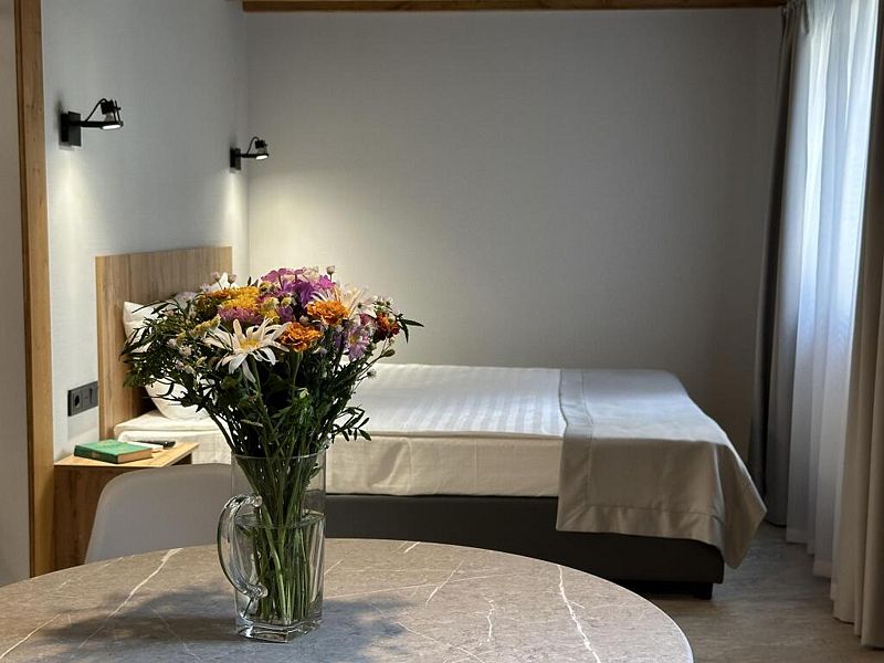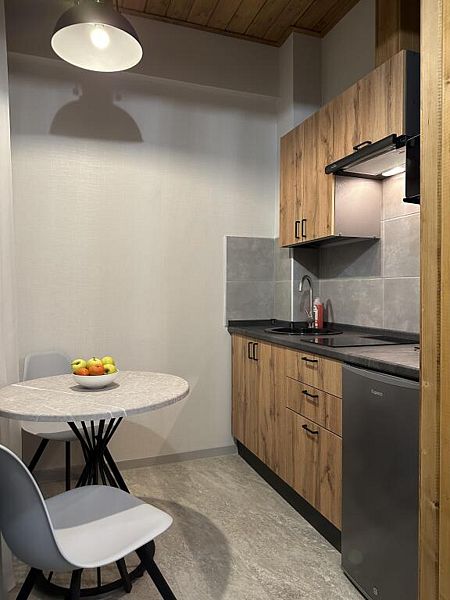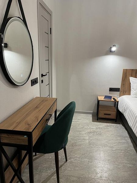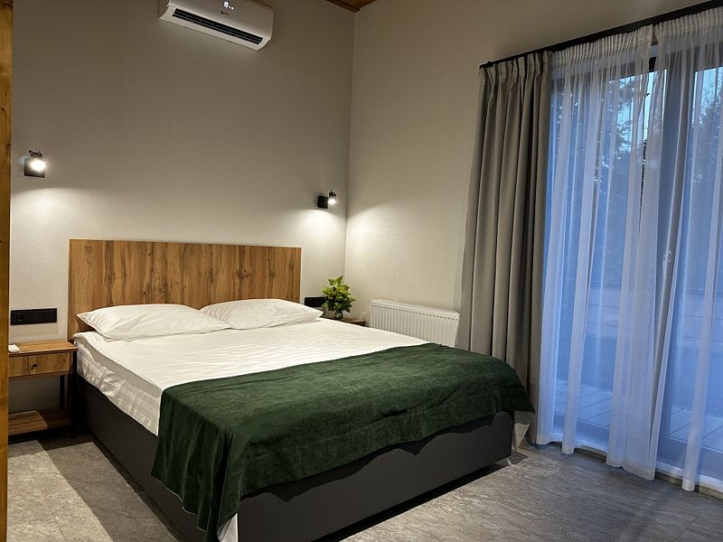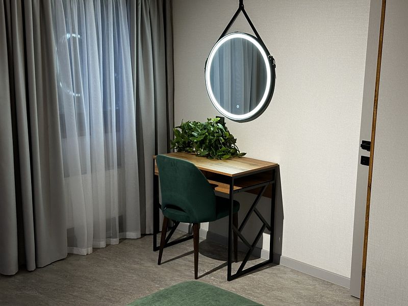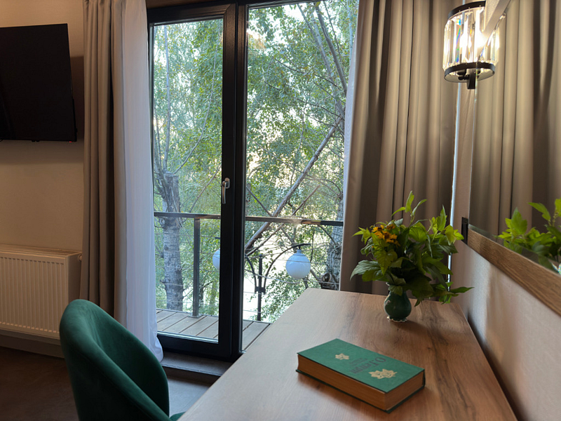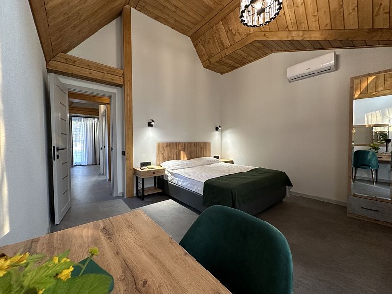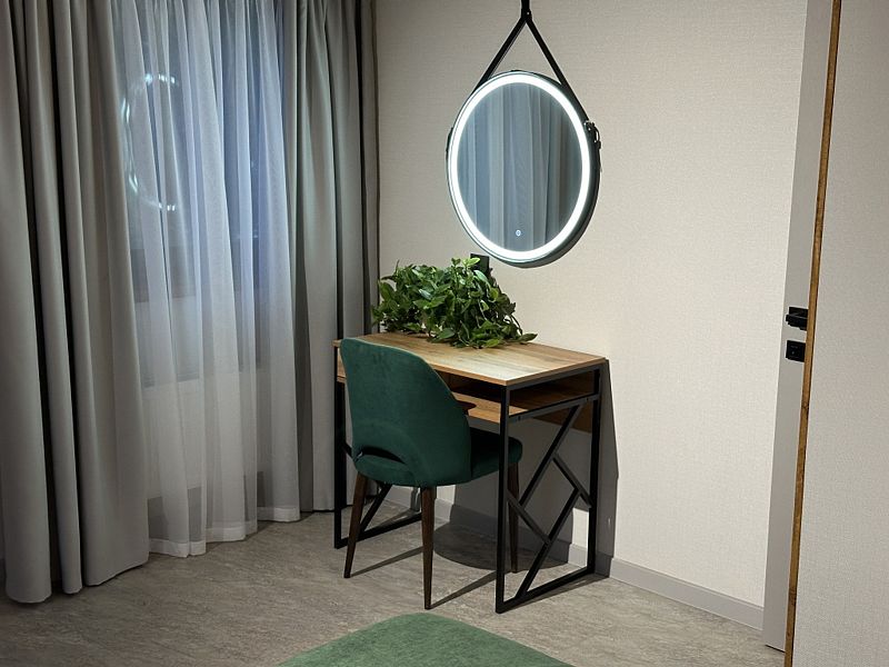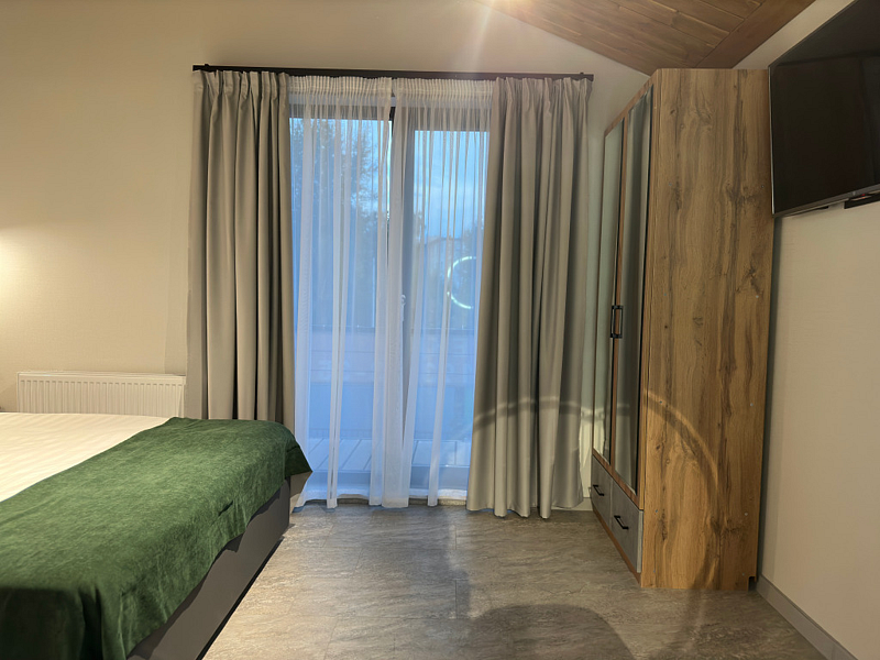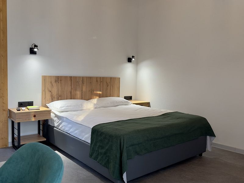 Двухместные апартаменты-студия с кухней, обеденной зоной, с видом на озеро. Есть вся необходимая мебель для проживания 2 гостей: - двуспальная кровать; - места для хранения вещей и обеденная зона; - кухонный уголок со всей необходимой посудой для приготовления и приема пищи; - необходимая бытовая техника и приборы: телевизор, холодильник, фен, утюг, стиральная машина, микроволновая печь; - Wi-Fi, Smart TV; - полотенца, качественное постельное белье из 100% хлопка (сатин).