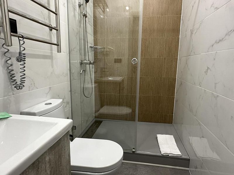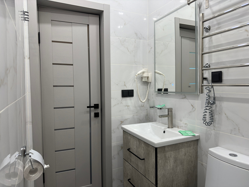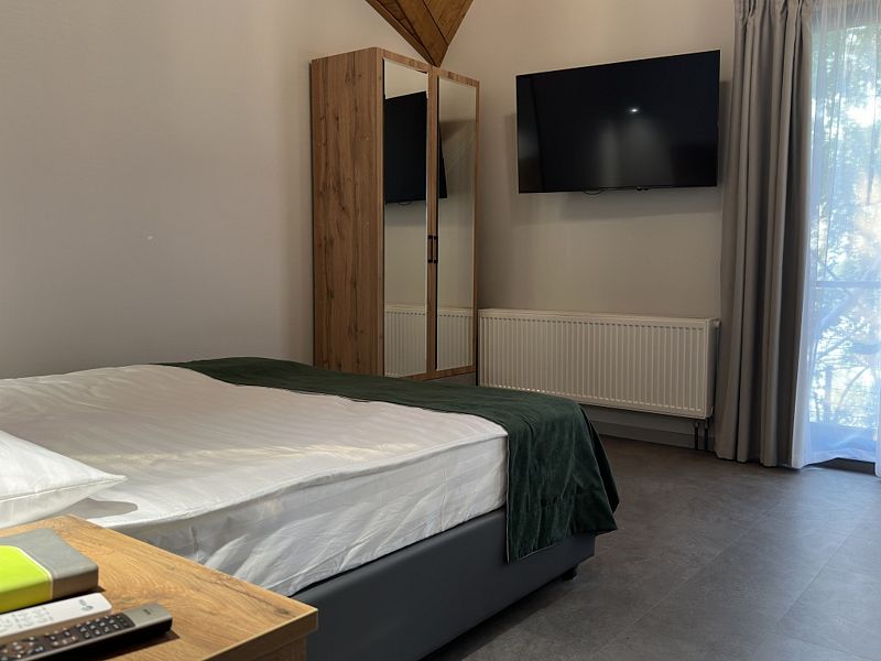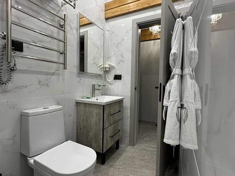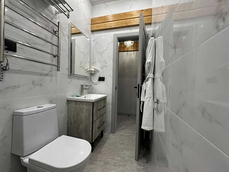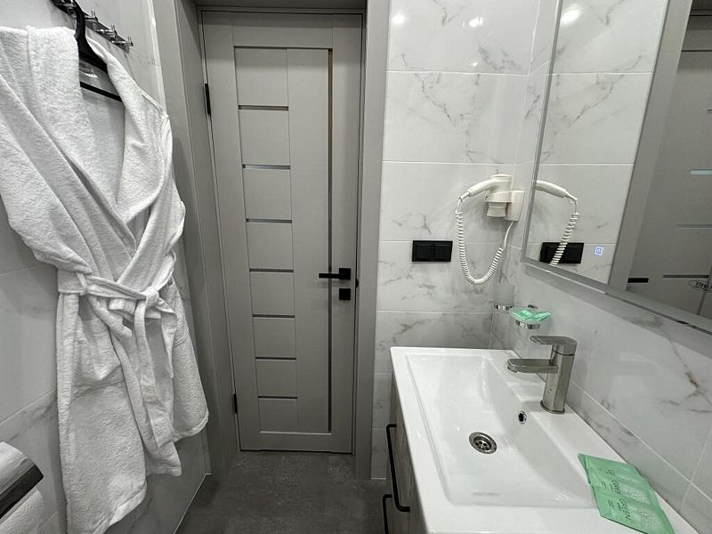 В номере гостей ждут телевизор и халат. Оснащение зависит от выбранной категории номера.