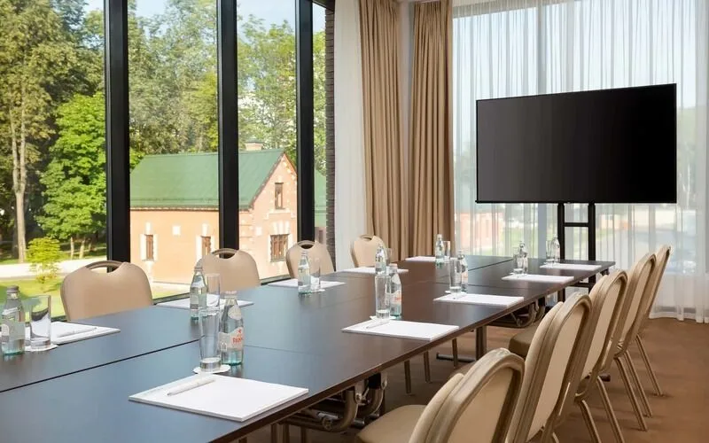 - Переговорная. Является частью конгресс-холла. Подходит для приватной встречи, презентации, переговоров.