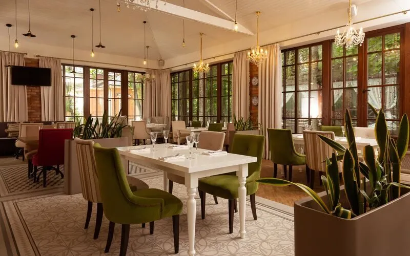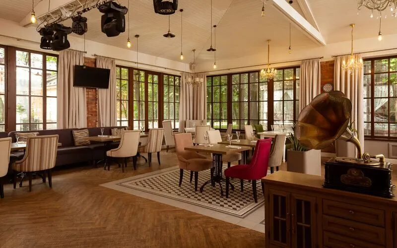 Ресторан в европейском стиле, есть лобби и VIP зона. Вместимость: до 130 гостей. Площадь: 240 кв.м.