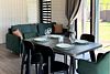 Большая гостиная с удобным раскладным диваном (160х200) совмещена с кухней и обеденной зоной. Кухня оснащена всей необходимой посудой для сервировки и приготовления пищи, индукционной плитой, посудомоечной машиной, духовым шкафом, СВЧ печью, холодильником, электрическим чайником. Также имеется встроенный фильтр очистки питьевой воды.
