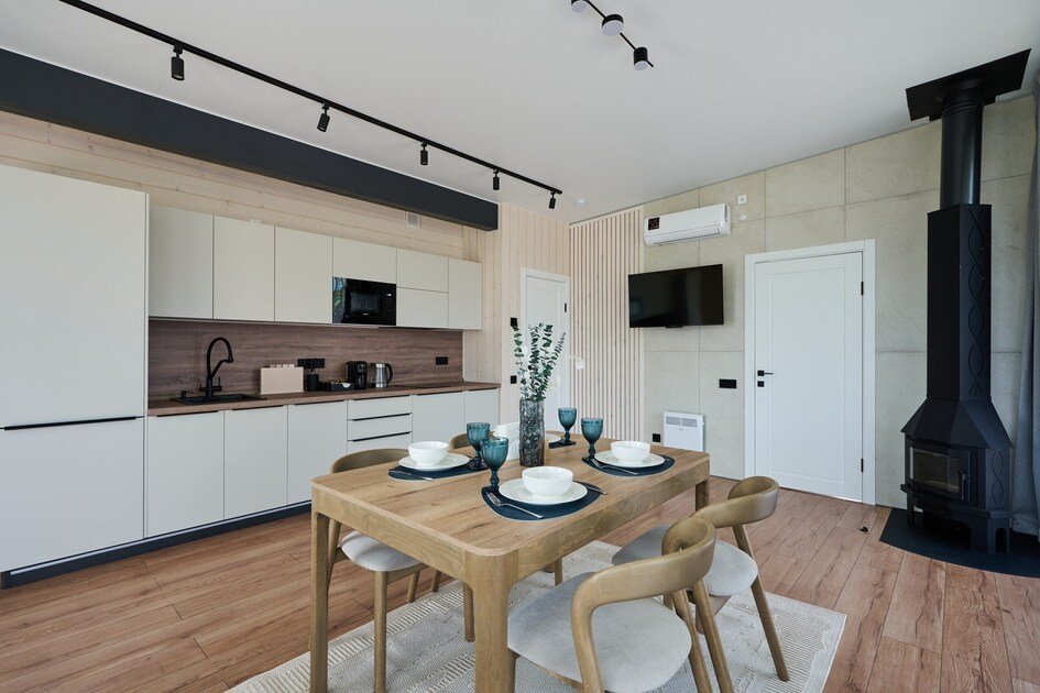 Интерьер дома продуман до мелочей и включает все необходимое для комфортного проживания. Просторная гостиная оборудована удобной мебелью, где приятно отдохнуть вечером перед камином или телевизором. Отдельная спальня обеспечит полноценный отдых после насыщенного дня. Санузел оснащен душем, обеспечивая максимум удобства и чистоты. Кухня оснащена современной техникой и посудой, позволяя готовить вкуснейшие блюда.