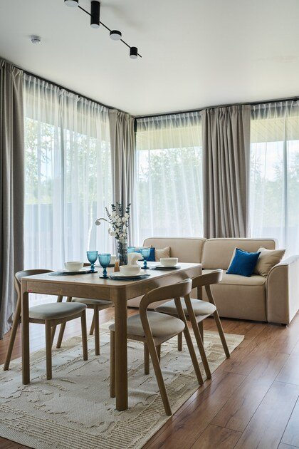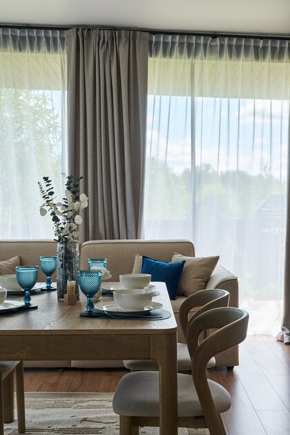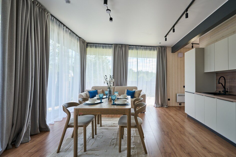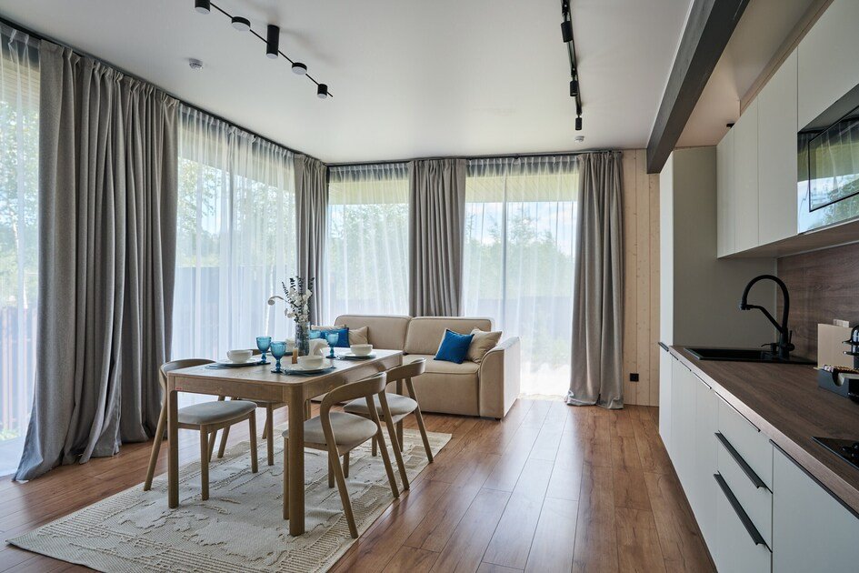 «Панорама Ривер 53 малый» идеально подойдет для тех, кто мечтает провести тихие, уютные дни вдали от городской суеты. Дом расположен среди живописных лесов и станет идеальным местом отдыха для пар или небольших семей. Здесь гостей ждет сочетание природы и комфорта: рядом с домом царит спокойная атмосфера, позволяющая забыть обо всех заботах и насладиться гармонией единения с природой.