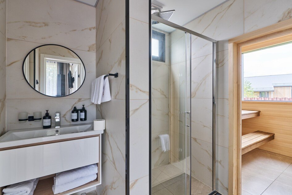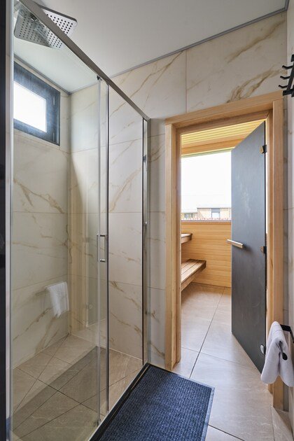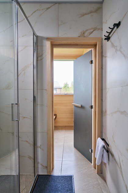 В доме есть сауна, где можно расслабиться и насладиться паром, не выходя из уютного пространства. Гостям предоставляется одно бесплатное посещение сауны продолжительностью до трех часов. Повторное посещение возможно за дополнительную плату при условии предварительной договоренности.
