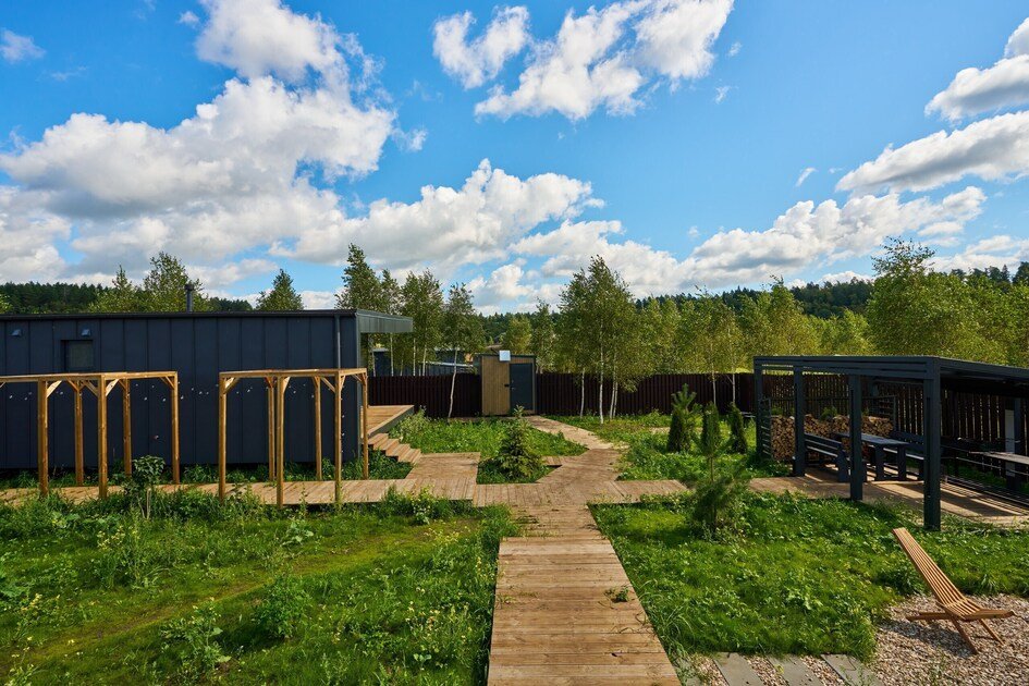 На территории есть чан, парковка и общая зона с домом номер 19. Однако у каждого дома предусмотрена собственная мангальная зона.