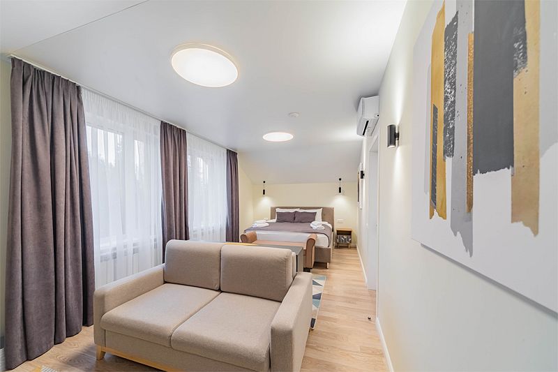 Современный просторный номер. Подходит для размещения от 2-х до четырех человек.