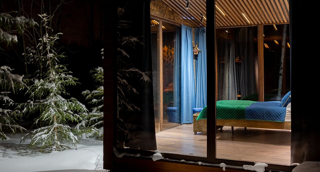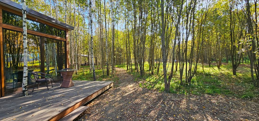 Просторные стеклянные дома, в которых гармонично сочетаются элементы искусства и природы, создают уютную атмосферу, позволяя вам полностью расслабиться и ощутить гармонию с окружающим миром. Отдохните на открытой террасе, завтракайте под звуки природы или устраивайте пикники с мангалом на свежем воздухе, наслаждаясь красотой берез, елей и сосен.