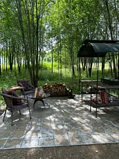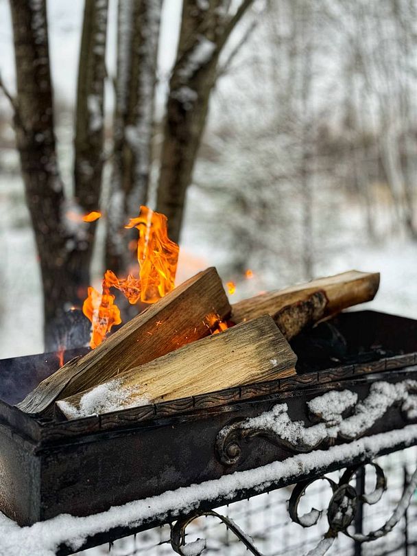 Рядом с домом оборудована мангальная зона, где гости могут насладиться приготовлением блюд на гриле. Для удобства предоставляются угли, розжиг, шампура и решетка, что позволяет провести время на свежем воздухе с семьей или друзьями и насладиться ароматом барбекю.