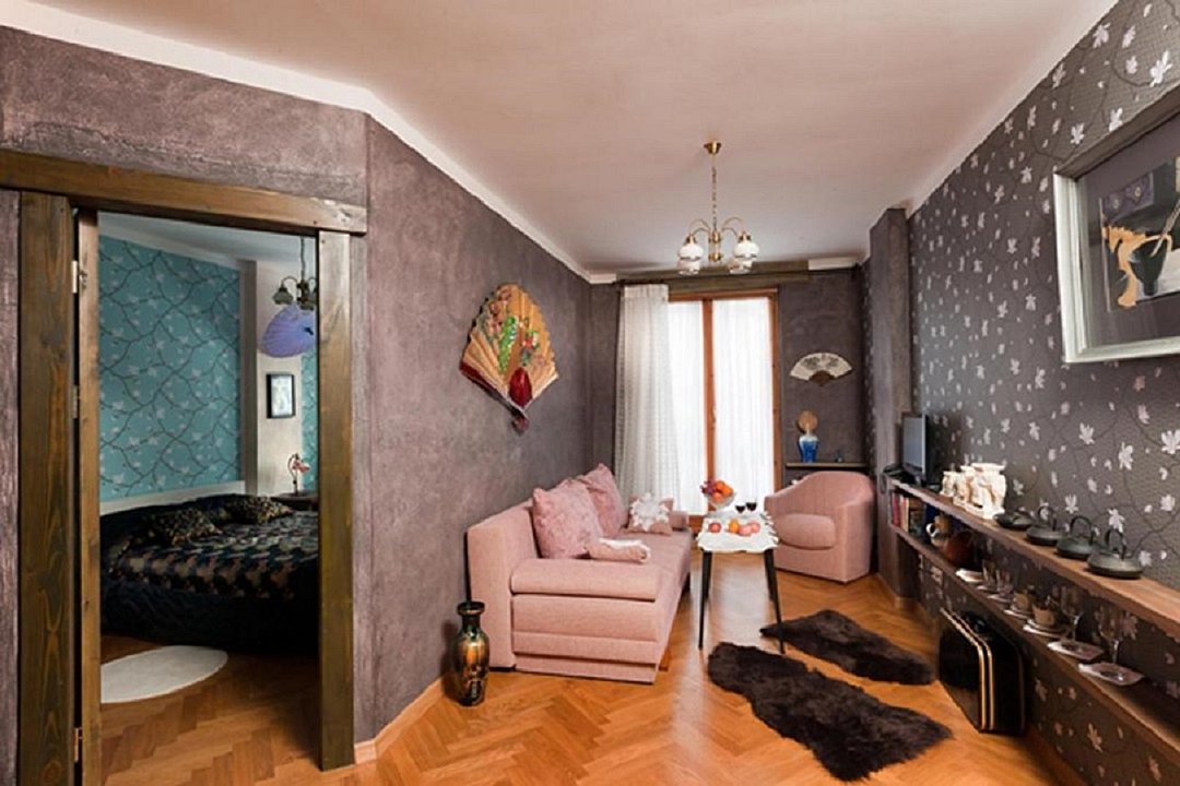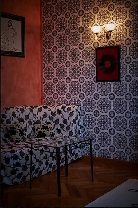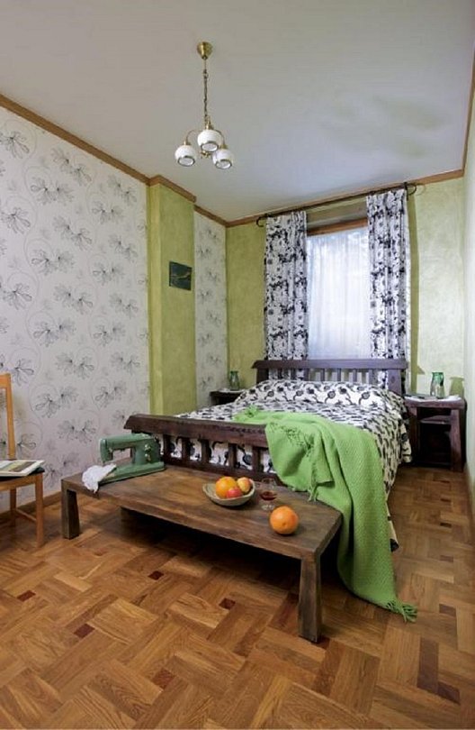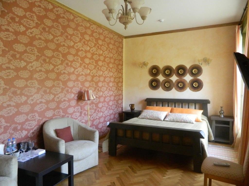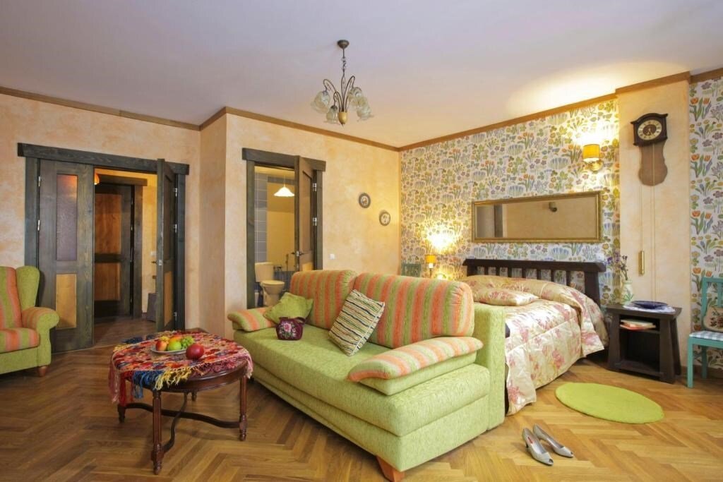 Однокомнатный номер в стиле атмосферы Серебряного века с индивидуальным дизайном, «hand-madе»: всё сделано вручную в собственных мастерских. В номере - двуспальная кровать, две тумбочки, кресло, диван, стол, холодильник, телевизор, электрочайник, фен, тапочки. Ванная комната с душем и туалетом.