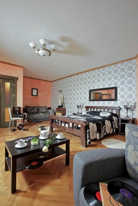 Однокомнатный номер в стиле атмосферы Серебряного века с индивидуальным дизайном, «hand-madе»: всё сделано вручную в собственных мастерских. В номере - двуспальная кровать, две тумбочки, стол, два кресла, холодильник, телевизор, электрочайник, фен. Ванная комната с душем и туалетом.