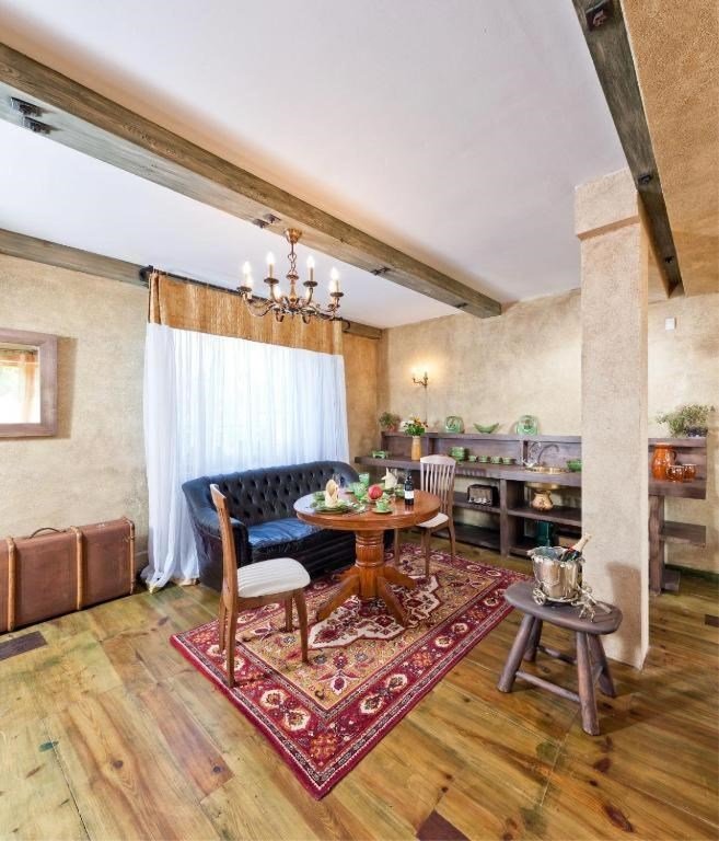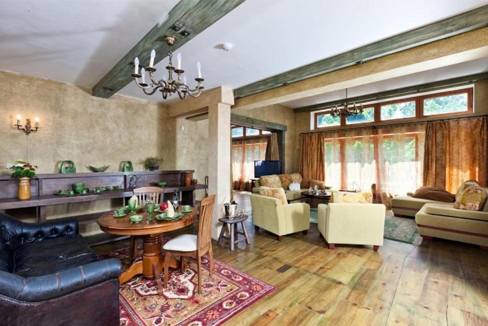 На территории есть ресторан домашней кухни с каминными залами, комплекс уникальных старинных бань по-белому и по-чёрному, 10 шале-музеев, художественно-ремесленные мастерские. На отдыхе гостей ждет много различных активностей.