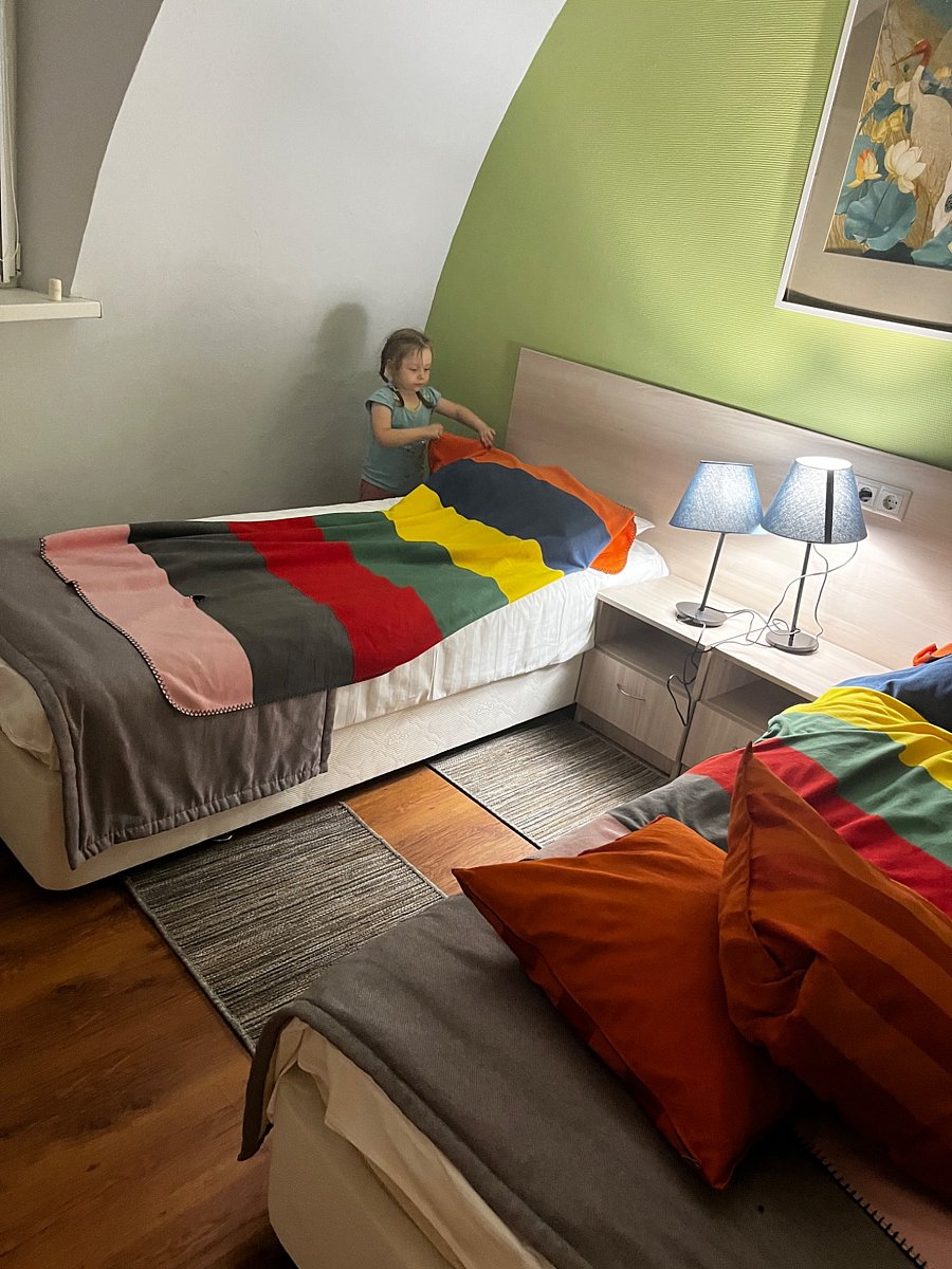 Путешествие с семьейОтдых с ребёнком в августе 2020Огромное спасибо за волшебный отпуск! Мы даже не ожидали, что здесь будет так хорошо). Жили в купольном доме с ребёнком 2 лет. Дом просто необыкновенный! Тёплый, светлый с круглым окном в потолке, из которого льётся естественный свет. Очень уютно и все продумано до мелочей, чувствовали себя как дома. Кухня совсем маленькая, мы на ней готовили только для ребёнка и ее было вполне достаточно. В ресторане очень вкусно кормят, большие порции. Можно заказать комплексное питание, можно просто по меню. Десертов нет совсем, супы и основные блюда шикарные! Для ребёнка просто суперская детская площадка! Повсюду животные - лошади и овцы, что нам нравилось, наблюдали за ними, когда гуляли. Единственное, идиллию с природой разрушает шум Симферопольского шоссе, не хватает в этой части дороги экранов. Красивая, ухоженная территория, все выдержано в определённой стилистике. Нам очень понравилось!