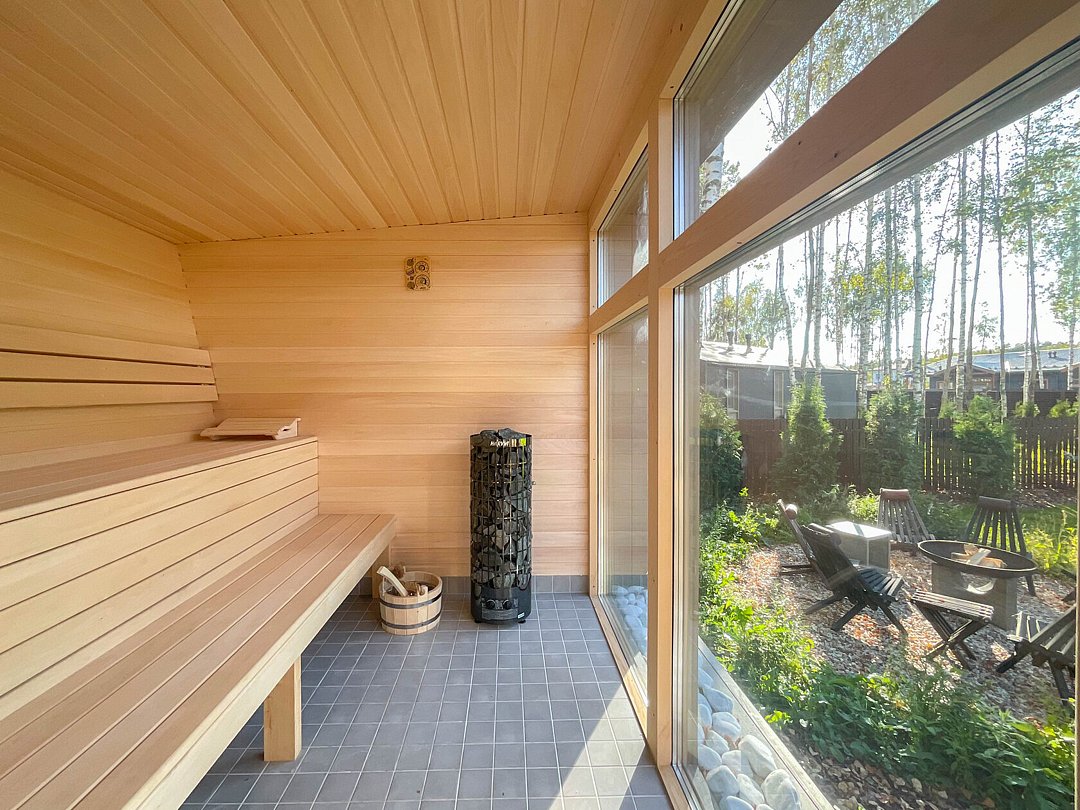 Гостям дома №1 соснового леса рады предложить сауну с панорамным окном на террасе у дома.