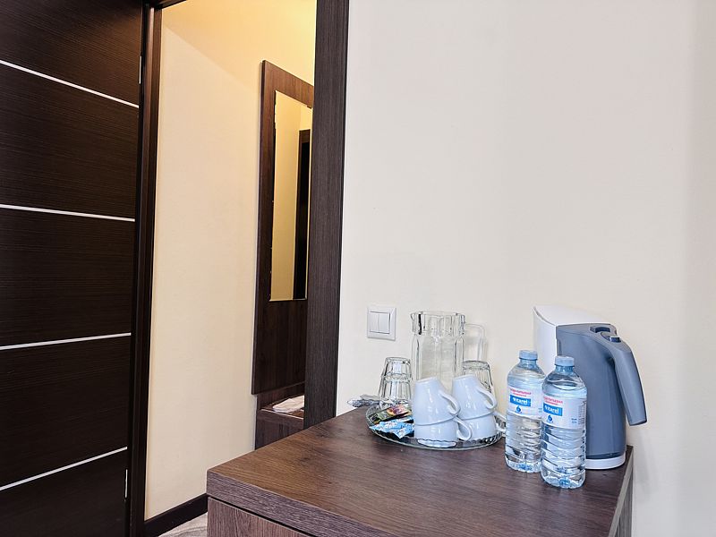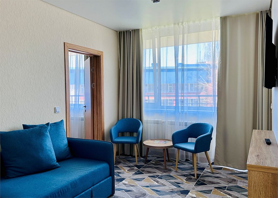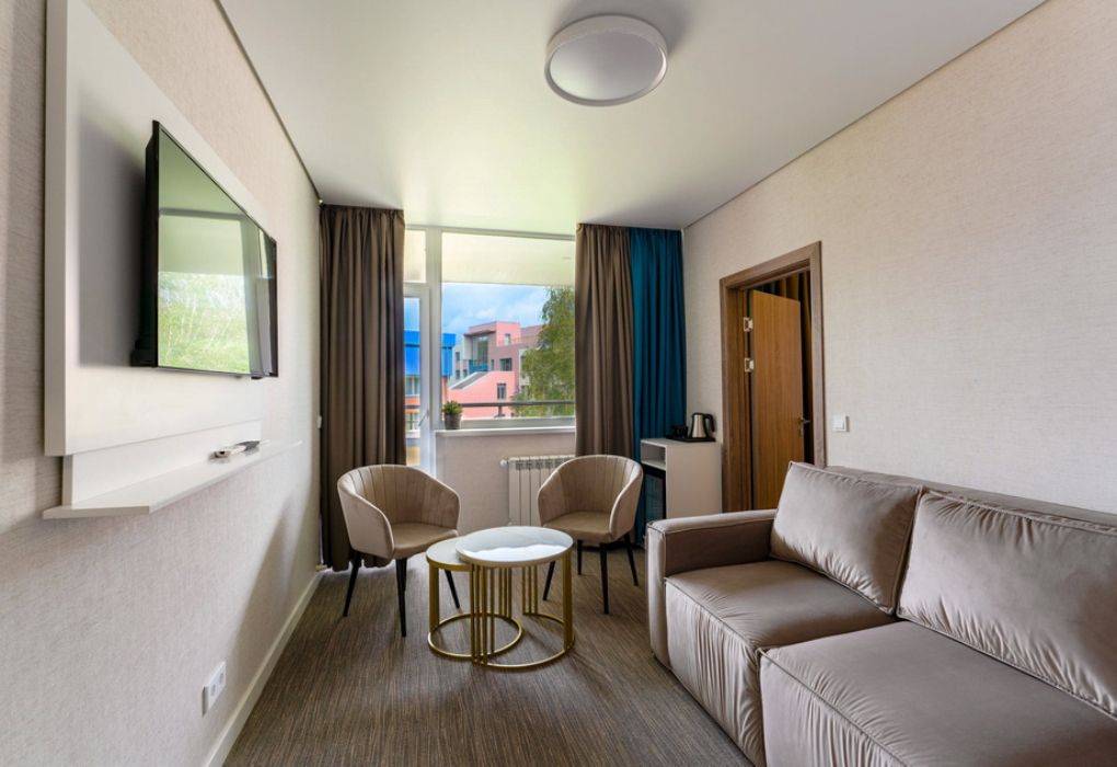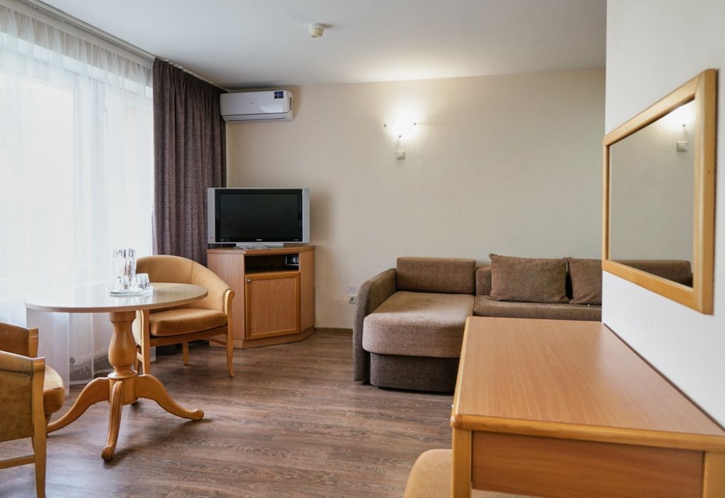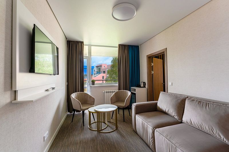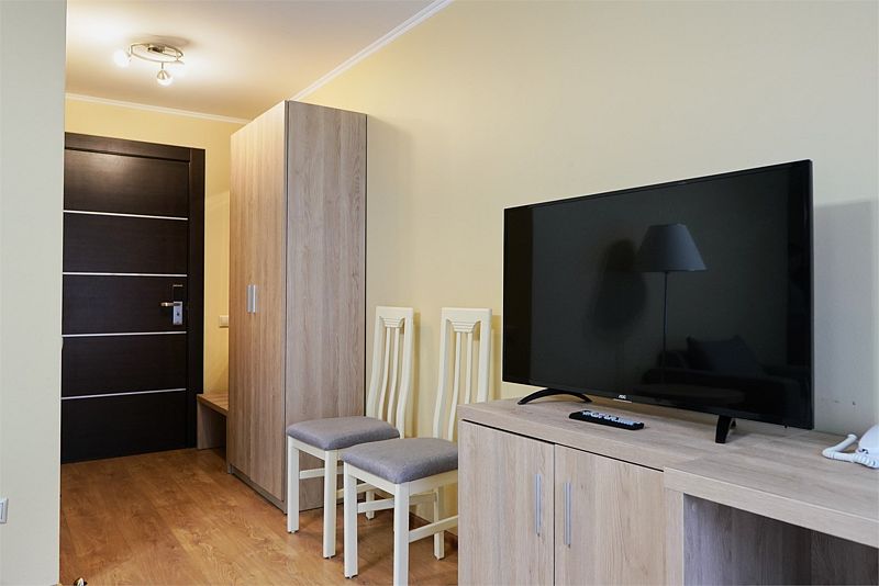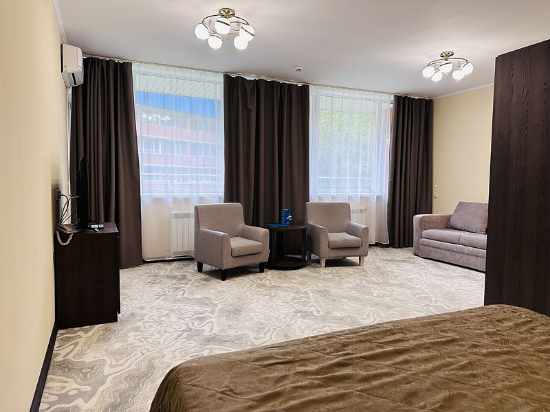 Новый номер после капитального ремонта корпуса. Современный, стильный и лаконичный дизайн создает атмосферу спокойствия и уюта, чтобы у вас остались самые приятные воспоминания о пребывании у нас. Самая популярная категория номера для семейного отдыха с детьми. В номере есть удобный раскладной диван.
