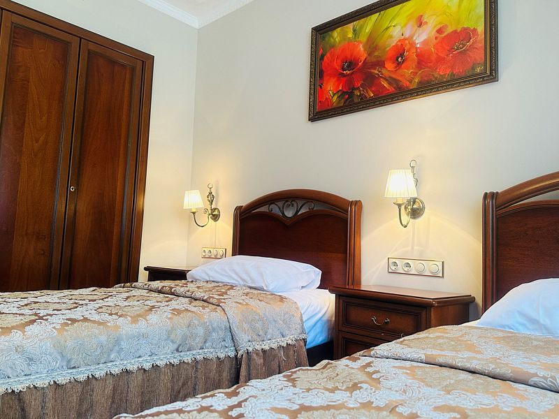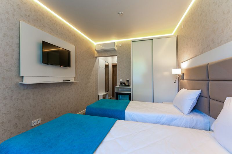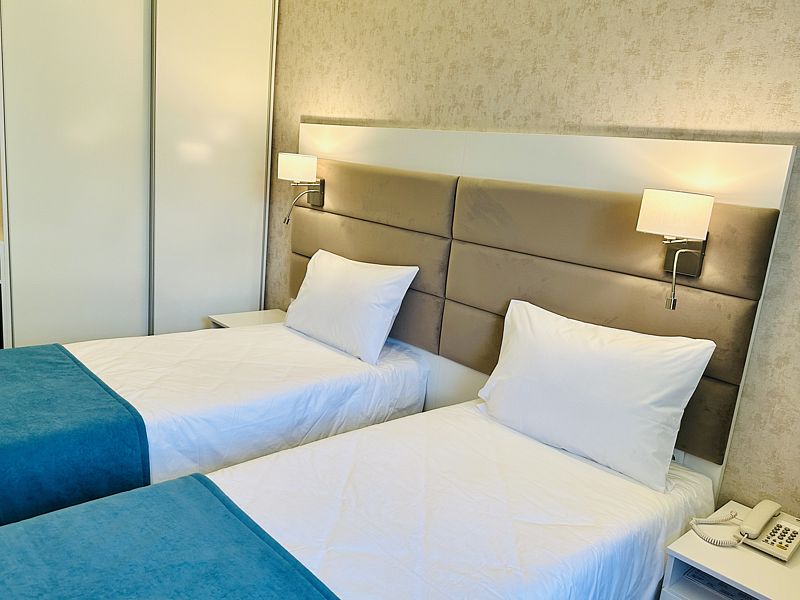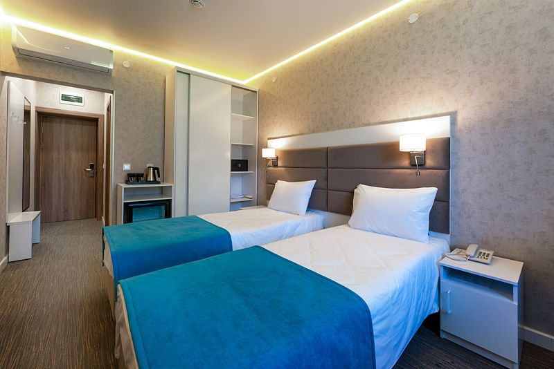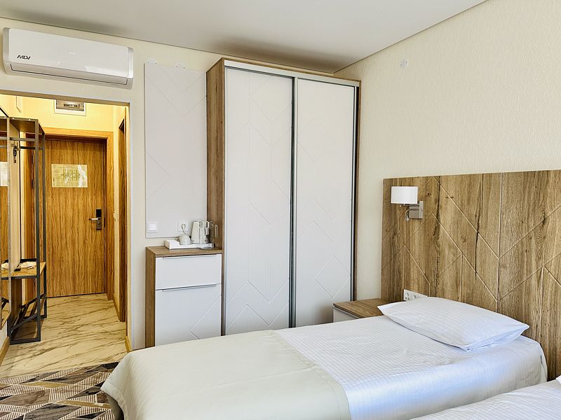 Номер с двумя раздельными кроватями. После капитального ремонта. Современный, стильный и лаконичный дизайн создает атмосферу спокойствия и уюта, чтобы у вас остались самые приятные воспоминания об отдыхе. Подходит для комфортного проживания одного или двух человек (две односпальные кровати можно сдвинуть в одну).