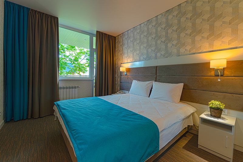 Номер с одной большой кроватью. После капитального ремонта. Современный лаконичный дизайн создает атмосферу спокойствия и уюта, чтобы у вас остались самые приятные воспоминания об отдыхе. Подходит для комфортного проживания одного или двух человек (двуспальная кровать).