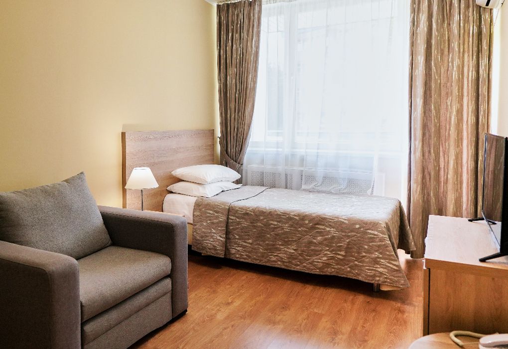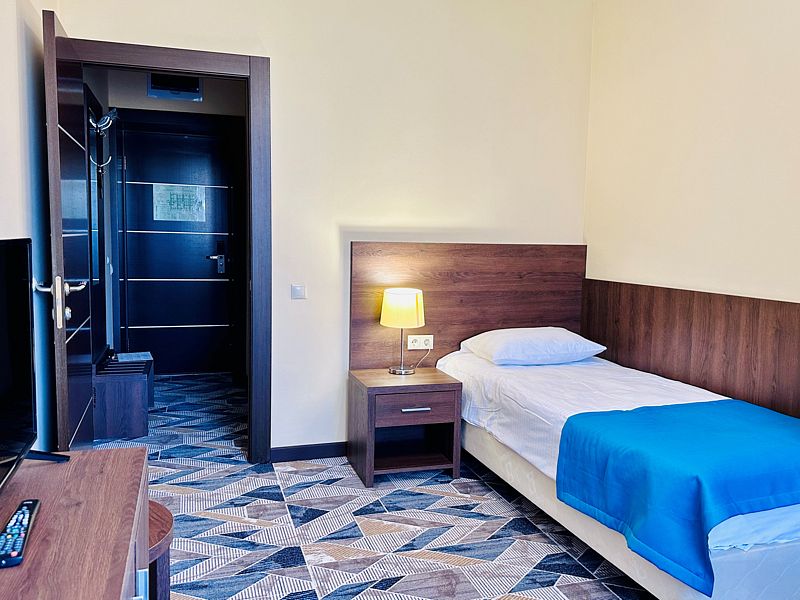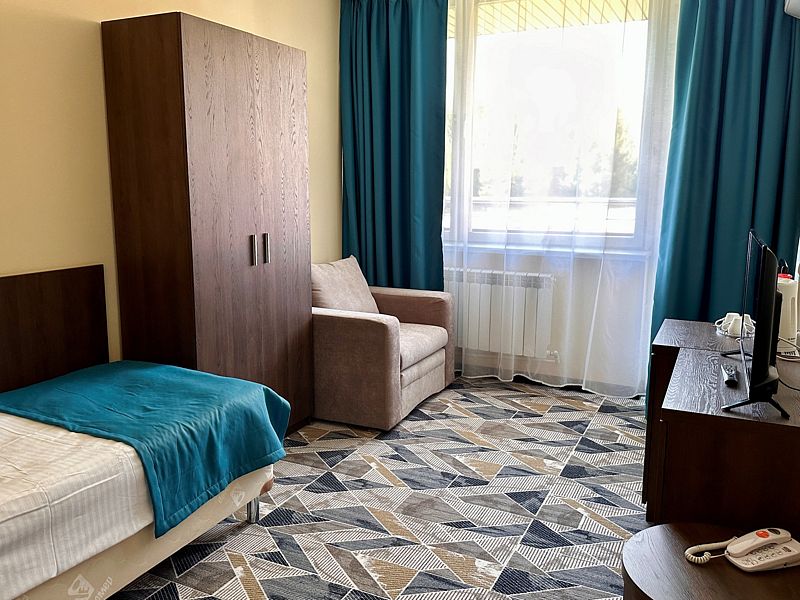 Просторный номер после капитального ремонта корпуса. Современный, стильный и лаконичный дизайн создает атмосферу спокойствия и уюта, чтобы у вас остались самые приятные воспоминания об отдыхе. Подходит для комфортного проживания одного или двух человек (одна односпальная кровать).