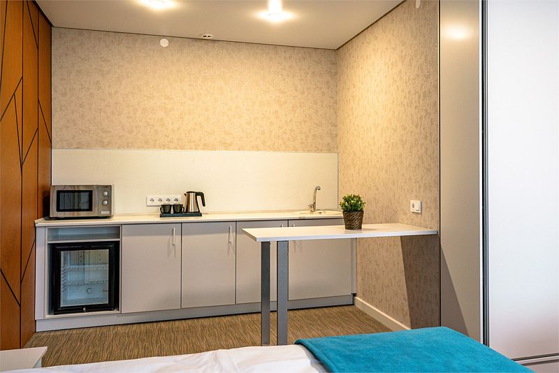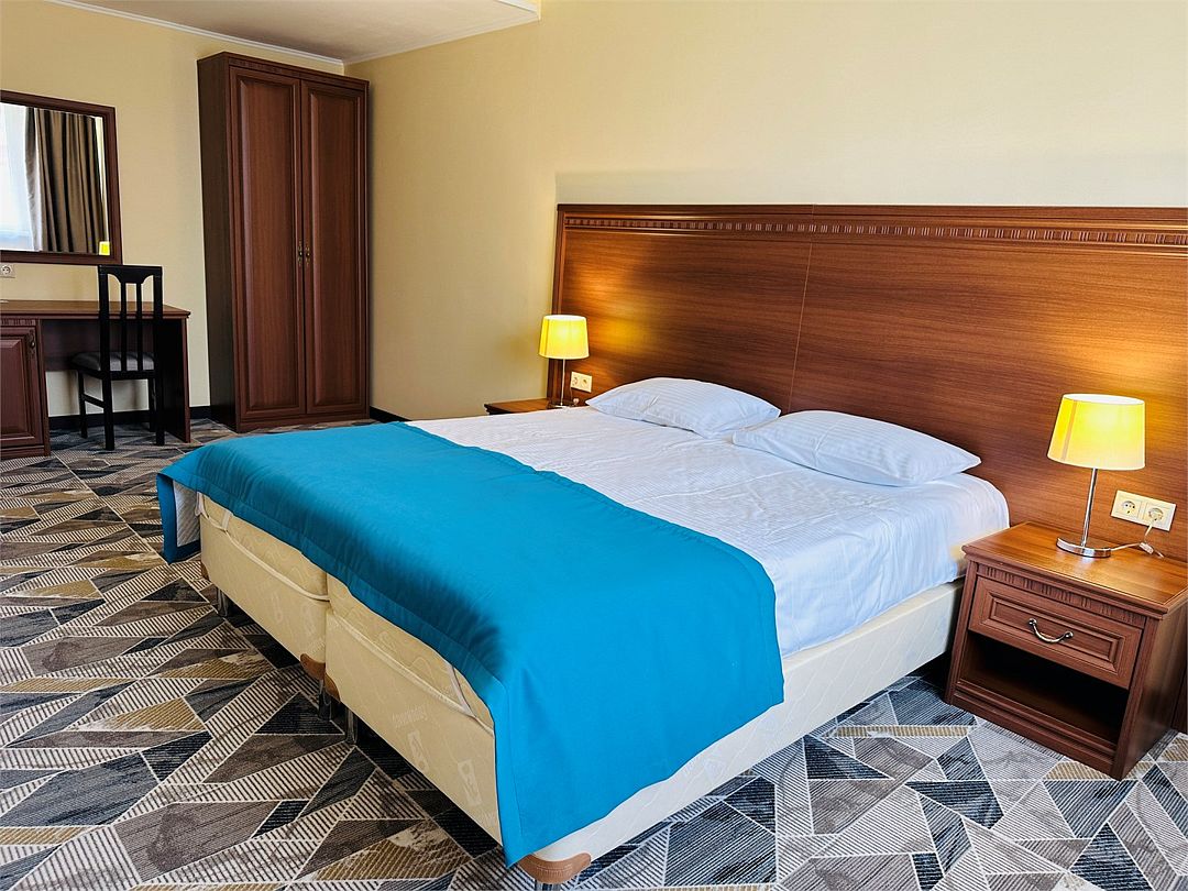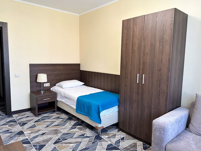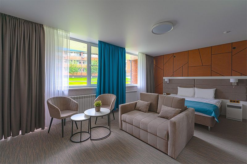 Номера данной категории расположены в 4 корпусе на основной территории. Корпуса соединены с медицинским центром теплым переходом: не нужно выходить на улицу. На время ремонтных работ переход закрыт.