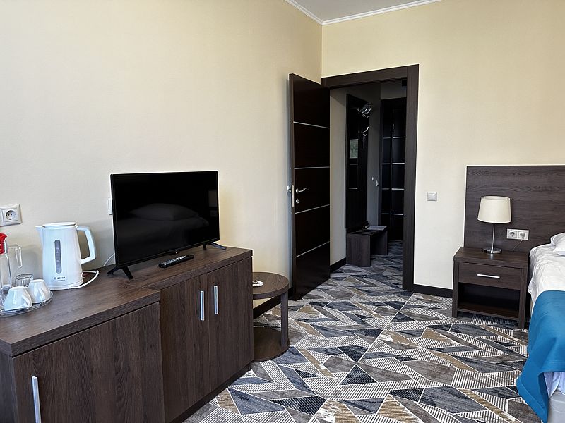 Номера данной категории расположены в 3 корпусе на основной территории. Корпуса соединены с медицинским центром теплым переходом: не нужно выходить на улицу. На время ремонтных работ переход закрыт.