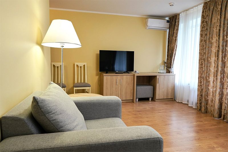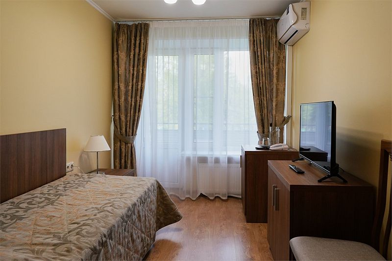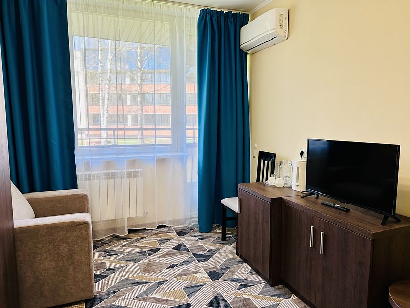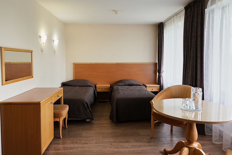 Номера данной категории расположены в 1 корпусе на основной территории. Корпуса соединены с медицинским центром теплым переходом: не нужно выходить на улицу. На время ремонтных работ переход закрыт.