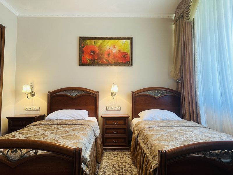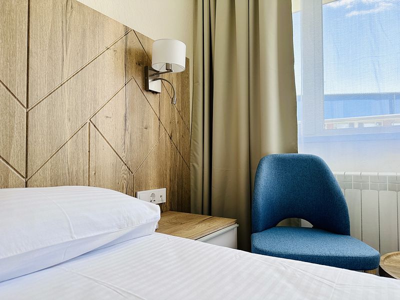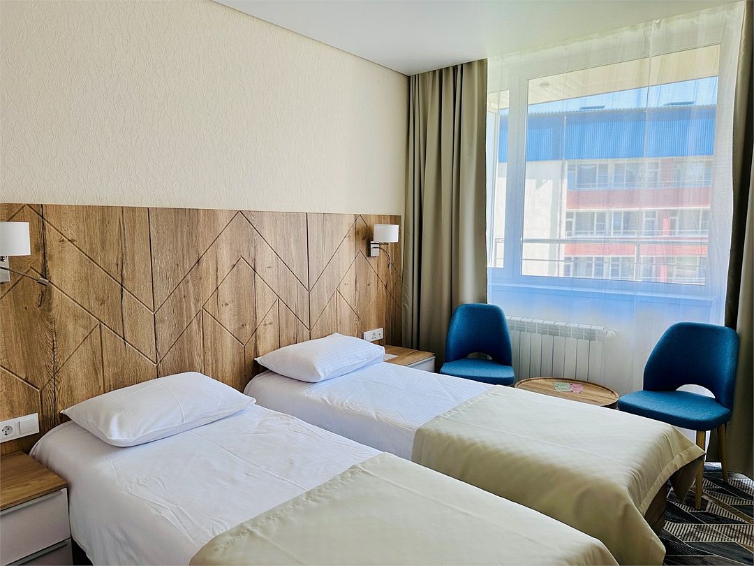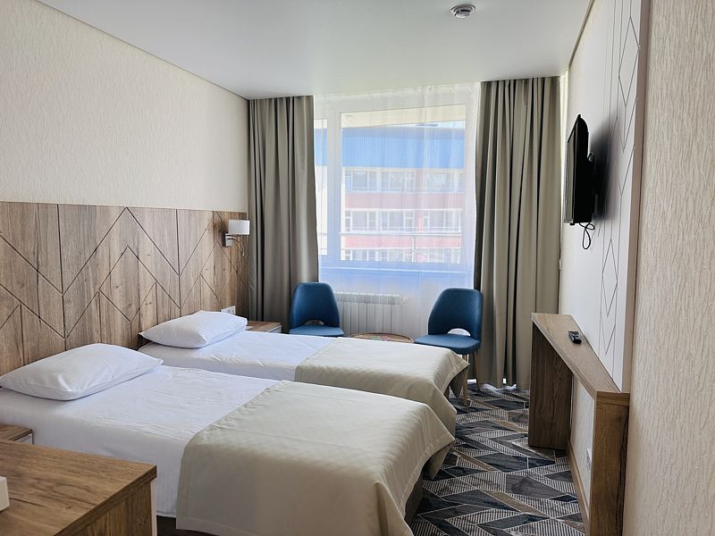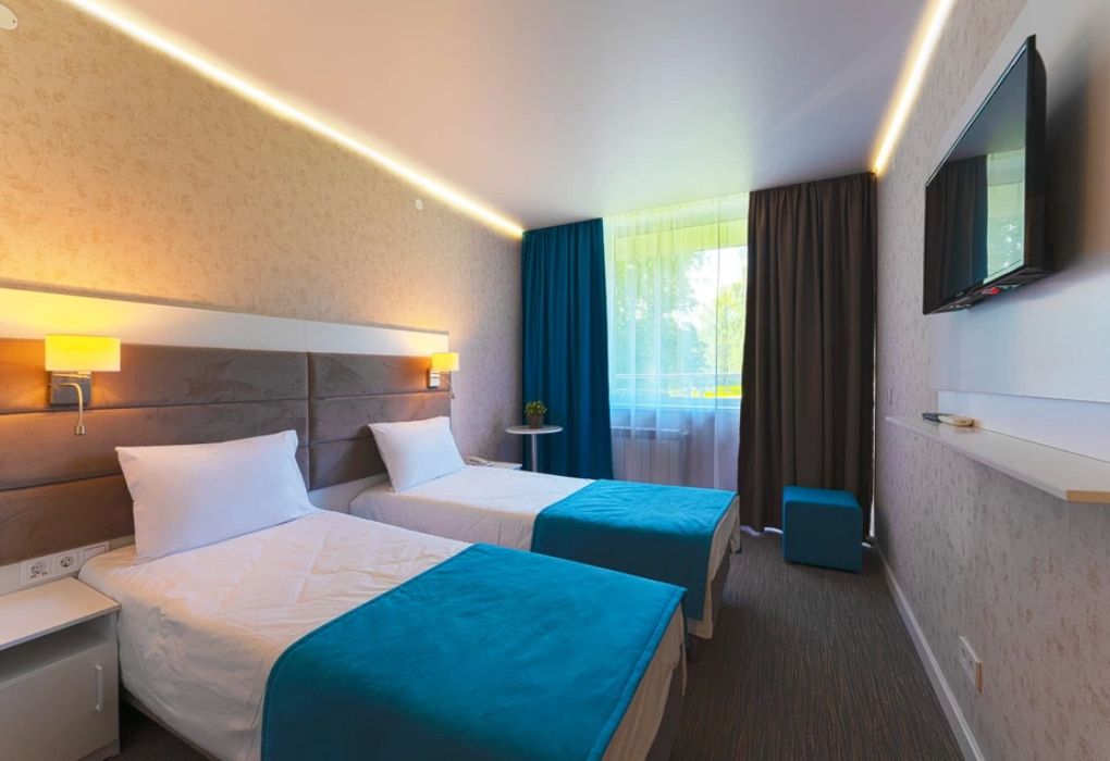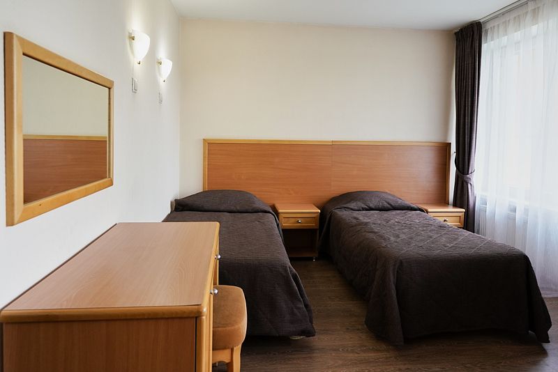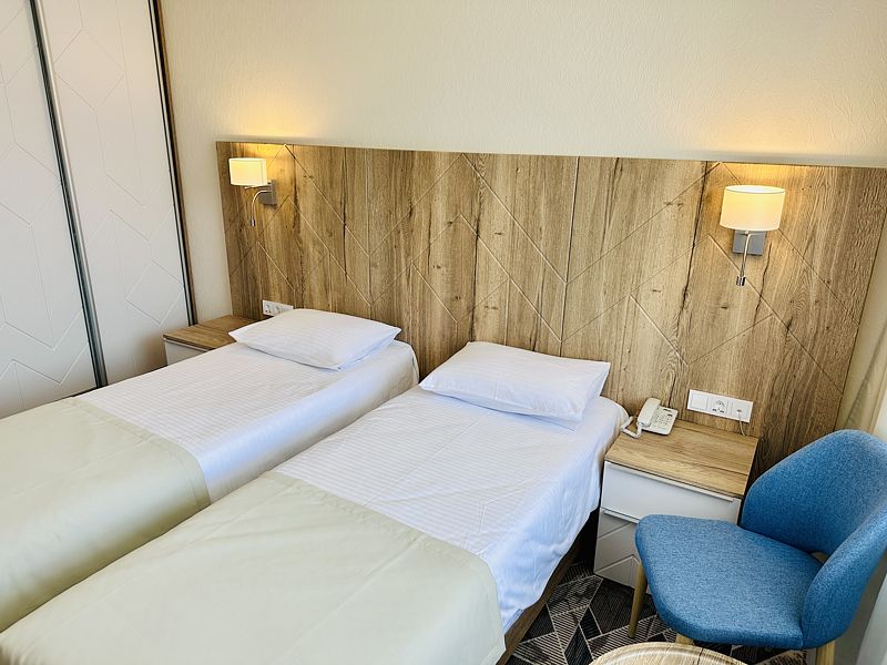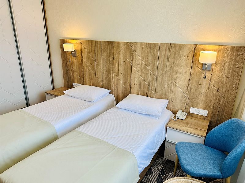 Номер с двумя раздельными кроватями. После капитального ремонта корпуса. Современный лаконичный дизайн создает атмосферу спокойствия и уюта, чтобы у вас остались самые приятные воспоминания об отдыхе. Подходит для комфортного проживания одного или двух человек (две односпальные кровати можно сдвинуть в одну).