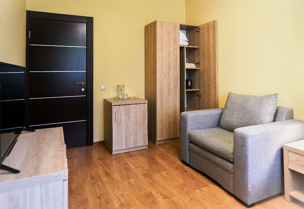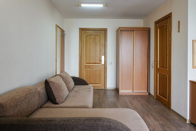 Просторный и комфортный номер площадью 32 м² подходит для проживания семьи из трех человек. Номера представлены с ремонтом, сделанным в разный период времени.