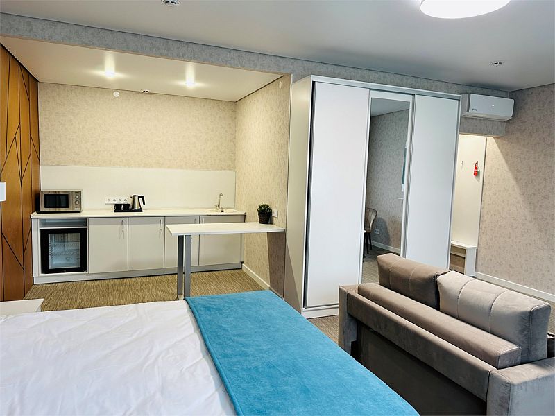 Новый номер после капитального ремонта корпуса. Современный, стильный и лаконичный дизайн создает атмосферу спокойствия и уюта, чтобы у вас остались самые приятные воспоминания о пребывании у нас.