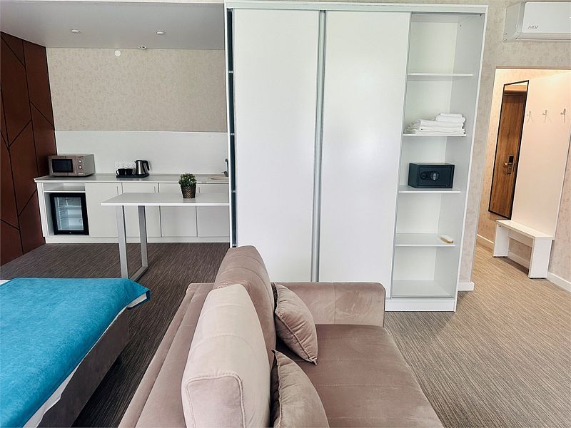 Красивый и просторный номер с современным ремонтом премиум-уровня и площадью 32 м². Подходит для комфортного проживания двух человек.