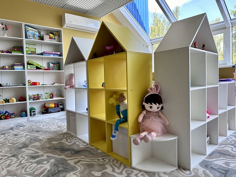 Просторная детская комната, словно страна чудес, полна игр и сюрпризов. Маленькие мечтатели найдут здесь все для безграничного веселья — от игровых приставок и модульных конструкторов до кукольного театра и бассейна с шариками.