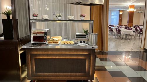 Просторный банкетный зал способен вместить до 120 гостей и идеально подходит как для торжественных банкетов, так и для деловых мероприятий. Просторная зона для встречи гостей обеспечит комфортный прием, а современное оборудование, включая акустическую систему и микрофон, гарантирует безупречное проведение семинаров, тренингов и других мероприятий.