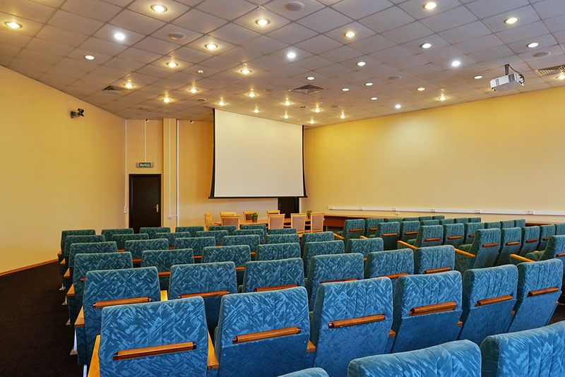 Зал оснащен современным оборудованием: массивный экран, мощный проектор, система звукоусиления и микрофоны гарантируют первоклассные презентации. Беспроводной интернет Wi-Fi позволит не прерывать связь во время лекций или рабочих совещаний.