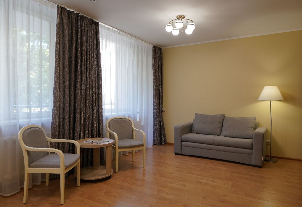 Номера данной категории расположены во 2 корпусе на основной территории. Корпуса соединены с медицинским центром теплым переходом: не нужно выходить на улицу. На время ремонтных работ переход закрыт.