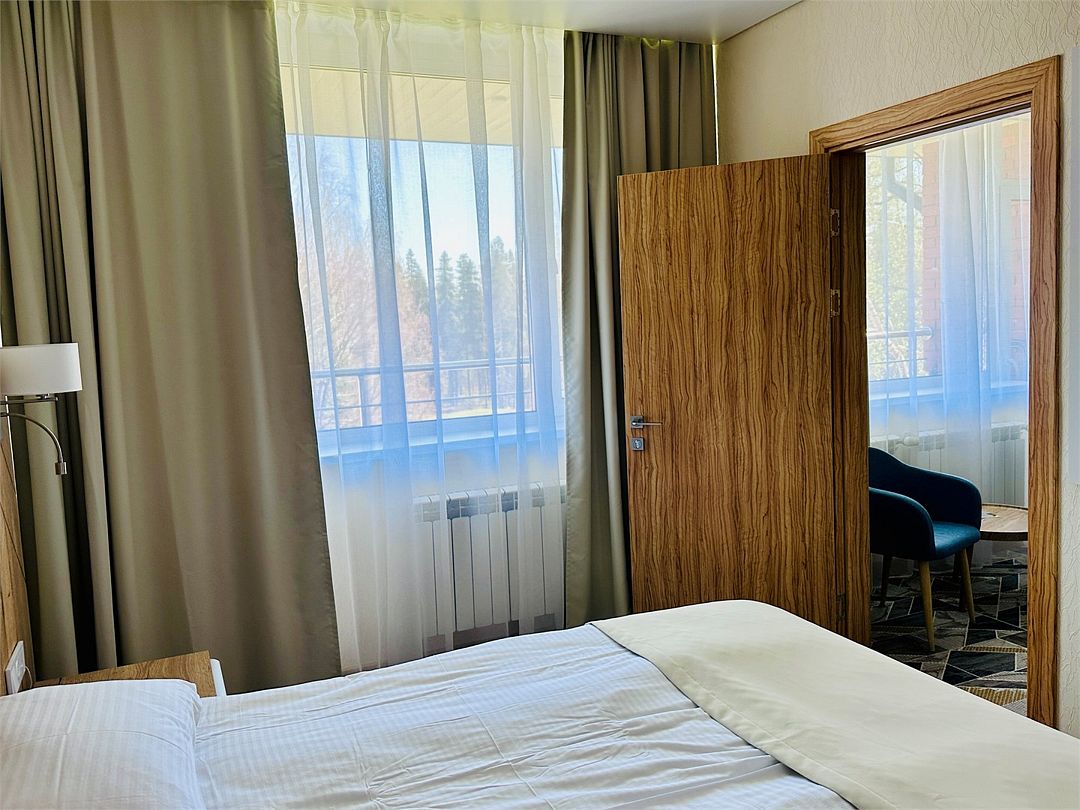 Номер расположен в 7 корпусе на ОТДЕЛЬНОЙ ТЕРРИТОРИИ на берегу Пяловского водохранилища (в 2 км от основной территории). Питание гостей осуществляется на территории 7 корпуса, лечение — на основной территории, в медицинском центре. Между двумя территориями ходит бесплатный трансфер. Номер для некурящих.
