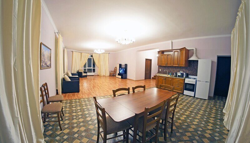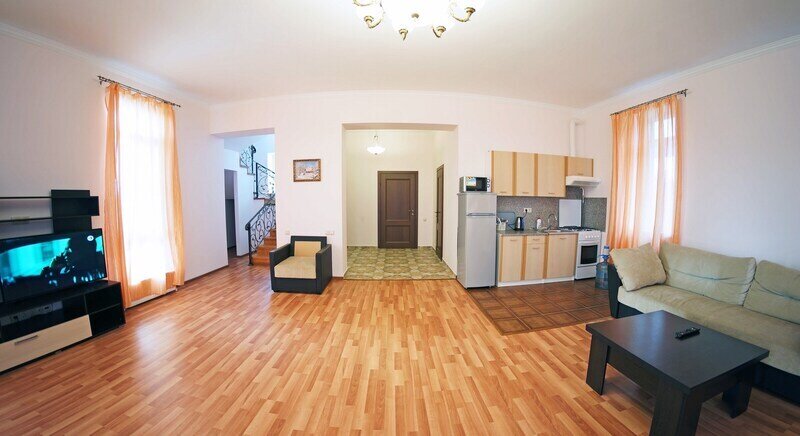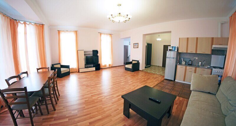с/у, одна кровать DBL,две TWIN,телевизор,раскладной диван,кухонный уголок,холодильник,электрочайник,МП,две душевые кабины.