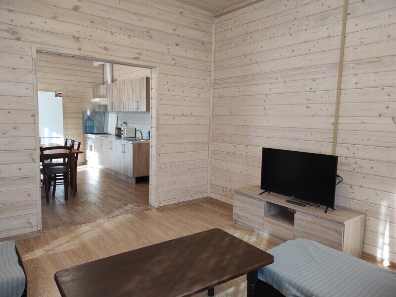 с/у,2 кровати DBL,2 кровати TWIN,телевизор,кухонный уголок,холодильник,электрочайник,МП,возле дома мангал.