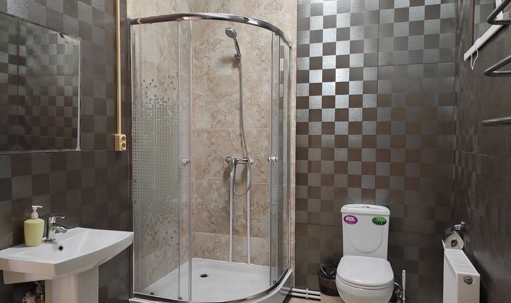 с/у,три кровати DBL,две кровати TWIN,телевизор,холодильник,электрочайник,МП,две душевые кабины, ванна,возле дома мангал.
