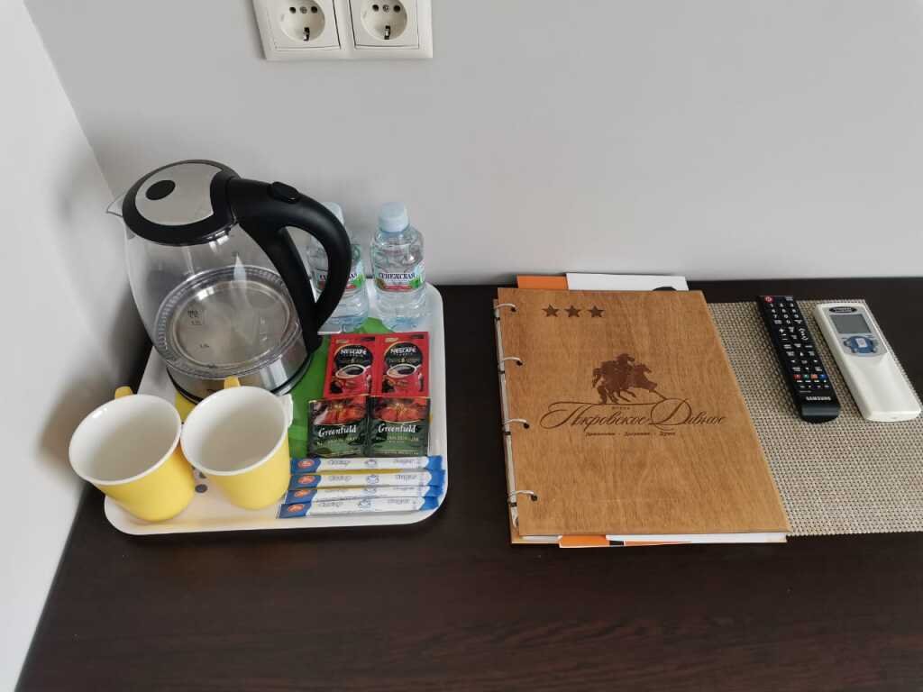 • чайная станция: электрический чайник и набор посуды для чаепития;