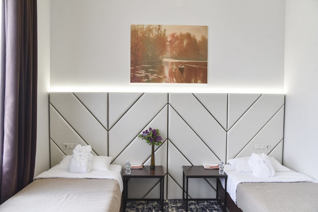 Standart TWIN— это большой, комфортабельный номер (32 кв. м.) c двумя раздельными кроватями. Возможно сдвинуть кровати при желании гостя.