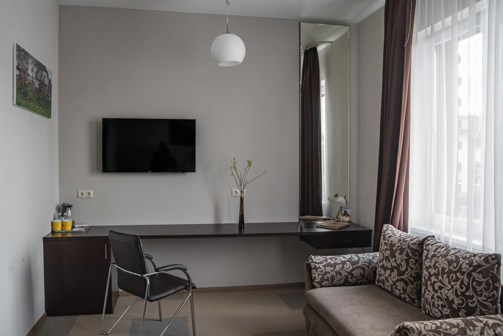 Standart DBL— это большой, комфортабельный номер (31 кв. м.) c одной двуспальной кроватью. При желании гостя можно разъединить.