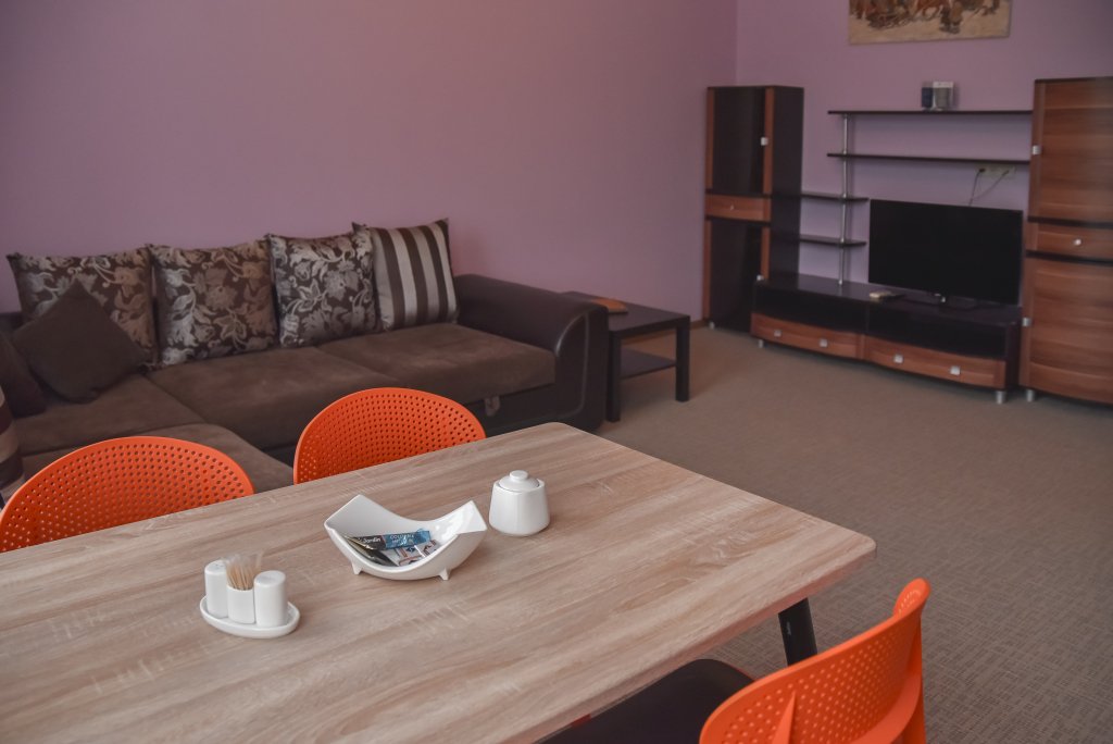 Апартаменты — это большой комфортабельный номер, состоящий из 2-х комнат: отдельная спальная комната и гостиная с кухонной зоной.