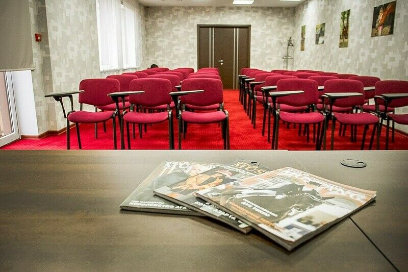 Конференц-зал оборудован современной техникой. Уютная атмосфера и интерьер зала создают деловой настрой и способствуют продуктивной работе. Идеально подойдет для деловых встреч, семинаров, мастер-классов, презентаций, конференций.