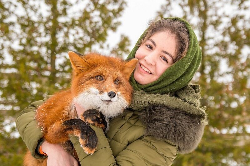 Пока идёте до катка Вас сопровождает контактный зоопарк на улице. Это и лисичка, и филин, и гуси, фазаны, бараны и козлы. Можно и нужно заглянуть в их зоодом!