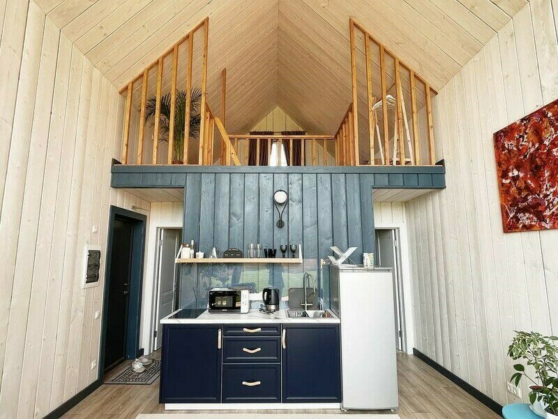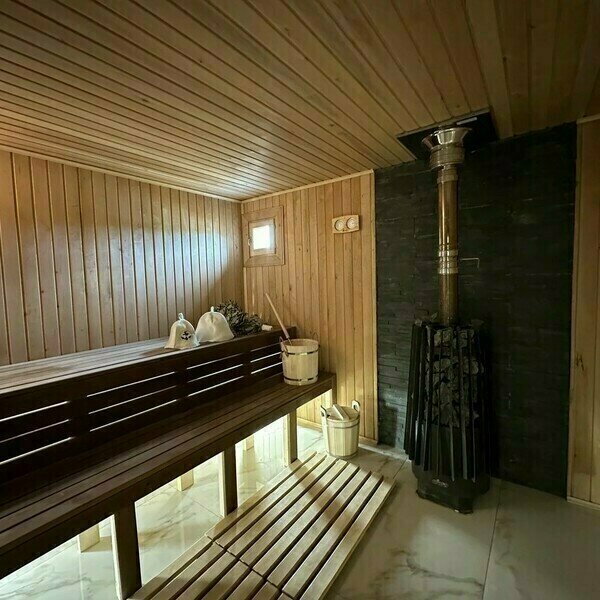 На территории базы отдыха есть русская баня с вениками, просторной зоной отдыха и кухонным островом. Для жителей домов А-фрейм есть опция арендовать банный чан, в котором можно дать телу расслабиться, почувствовав бодрящий контраст свежего воздуха и горячей воды.