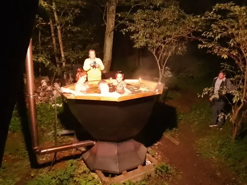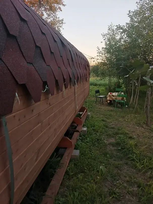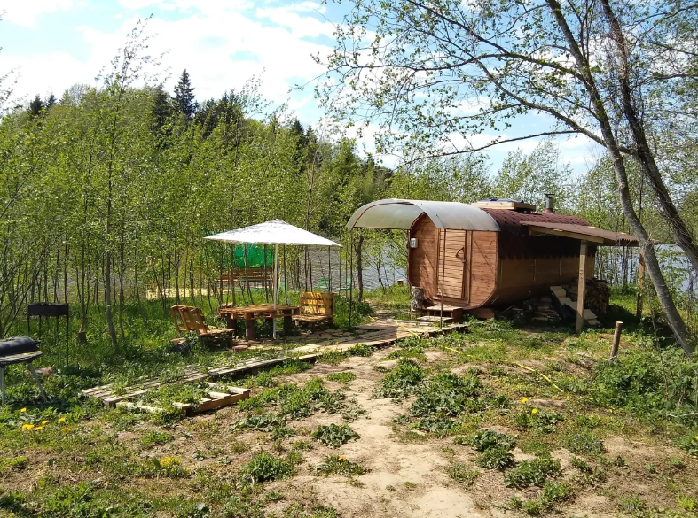 На территории есть баня, чан, мангал и беседки, которыми гости могут пользоваться. А благодаря расположению глэмпинга возле реки, открывается возможность рыбалки и поездок на лодках.