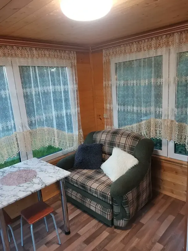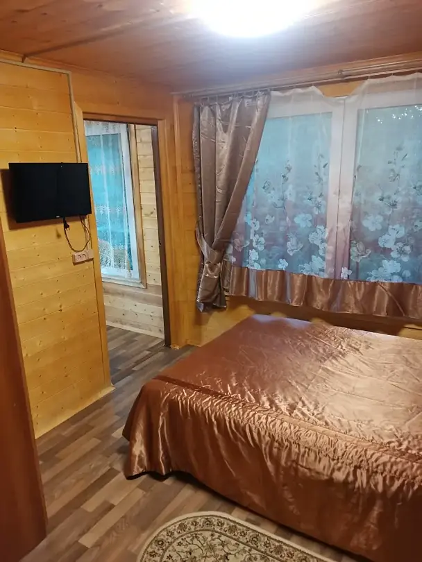 Номер в доме , в спальне – двухспальная кровать , на кухне – раскладной диван, вся необходимая бытовая техника и посуда. Душ , туалет в доме. На территории мангал, беседка.