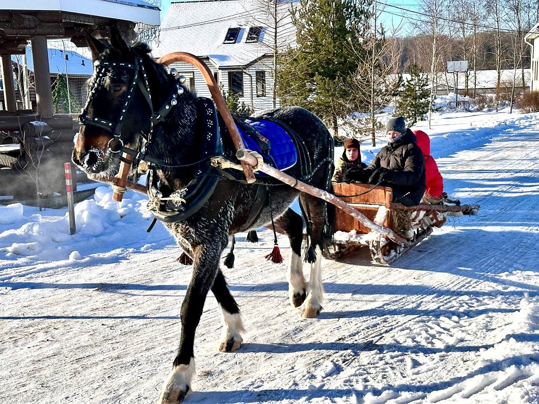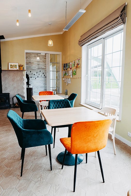 На 10 гектарах вас ждут уютные коттеджи, кафе, ресторан, конный клуб, птичий двор и контактный зоопарк с козами и овцами.