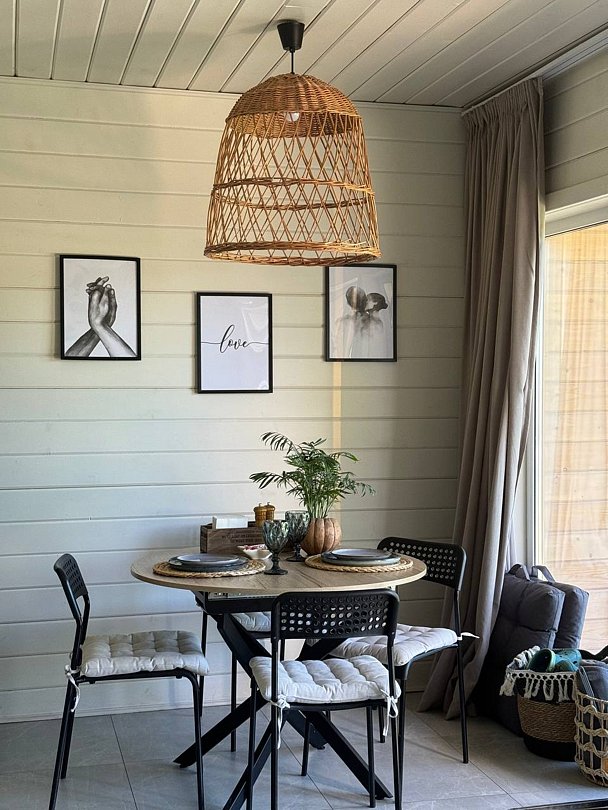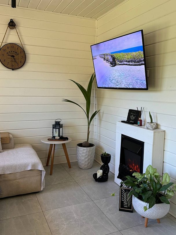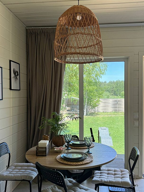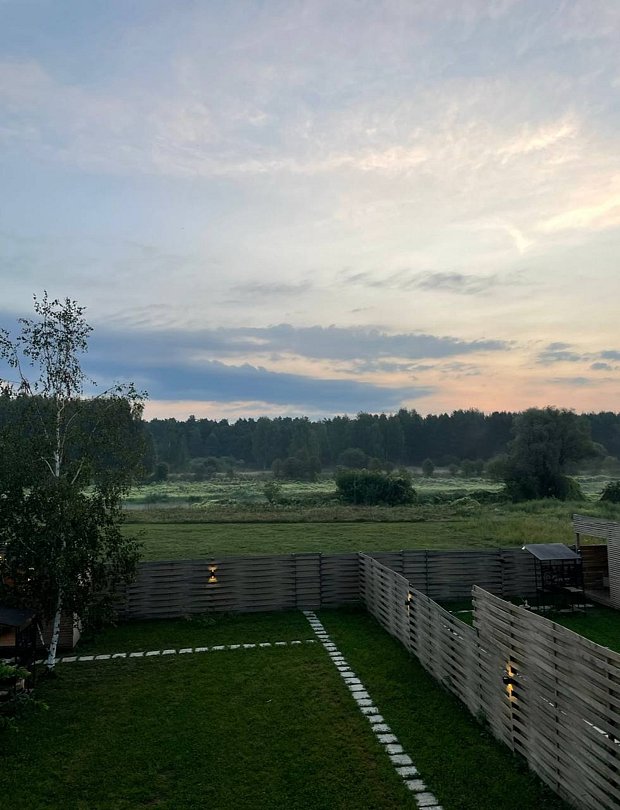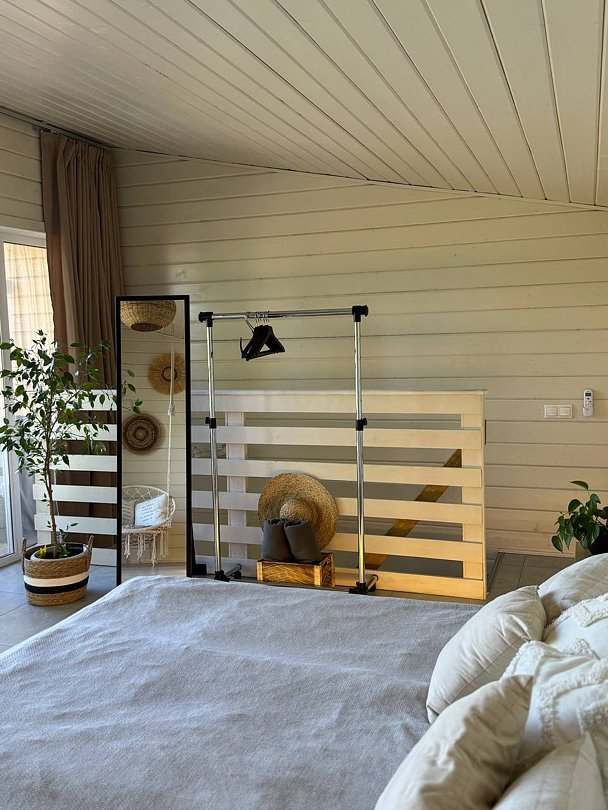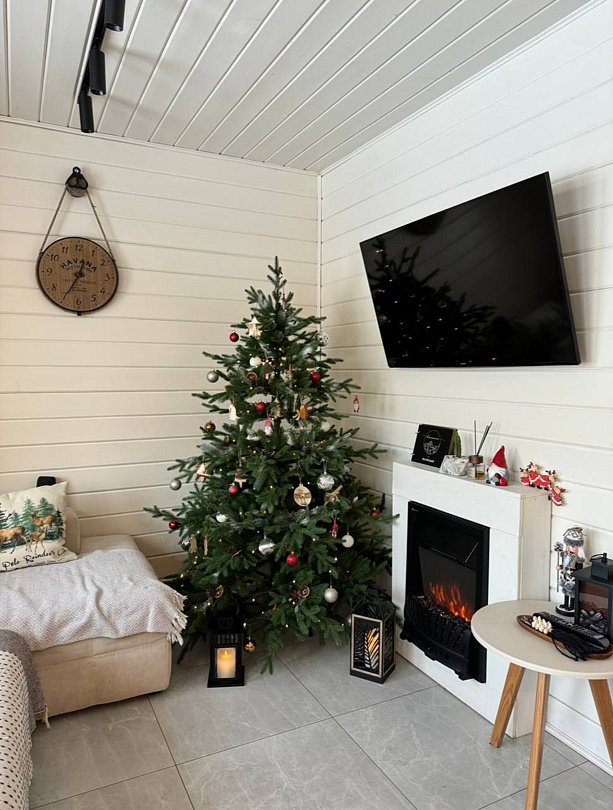 Для вас дом оборудован просторной спальней с подвесным креслом-гамаком и панорамным видом на реку, террасой с садовой мебелью для неспешного времяпрепровождения. В уютной гостиной можно провести вечер у камина. Кухня оснащена всем необходимым для готовки. Также к вашим услугам телевизор со Smart TV, колонка с Алисой и быстрый Wi-Fi.