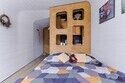 Размещение: комфортное размещение до семи человек. Две отдельные спальни — с двуспальной кроватью king-size и с двумя односпальными кроватями. Диван‑кровать для двоих в гостиной, диван‑кровать для одного в прихожей, детская кроватка. Постельное бельё для каждого гостя.