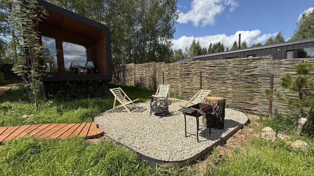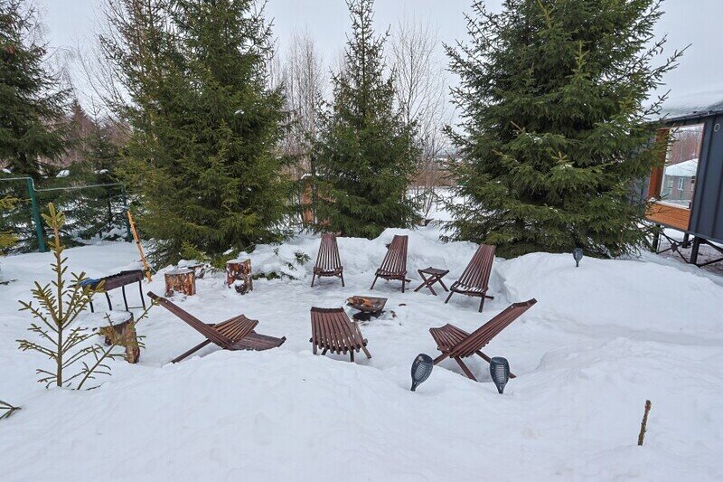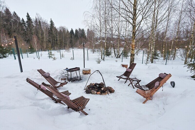 На участке: купель Фурако (оплачивается отдельно), кострище и мангал для барбекю, шампуры и решётка для гриля. Дрова для кострища — бесплатно. Садовая мебель (кресла, шезлонги). Бесплатная парковка для двух автомобилей на участке.